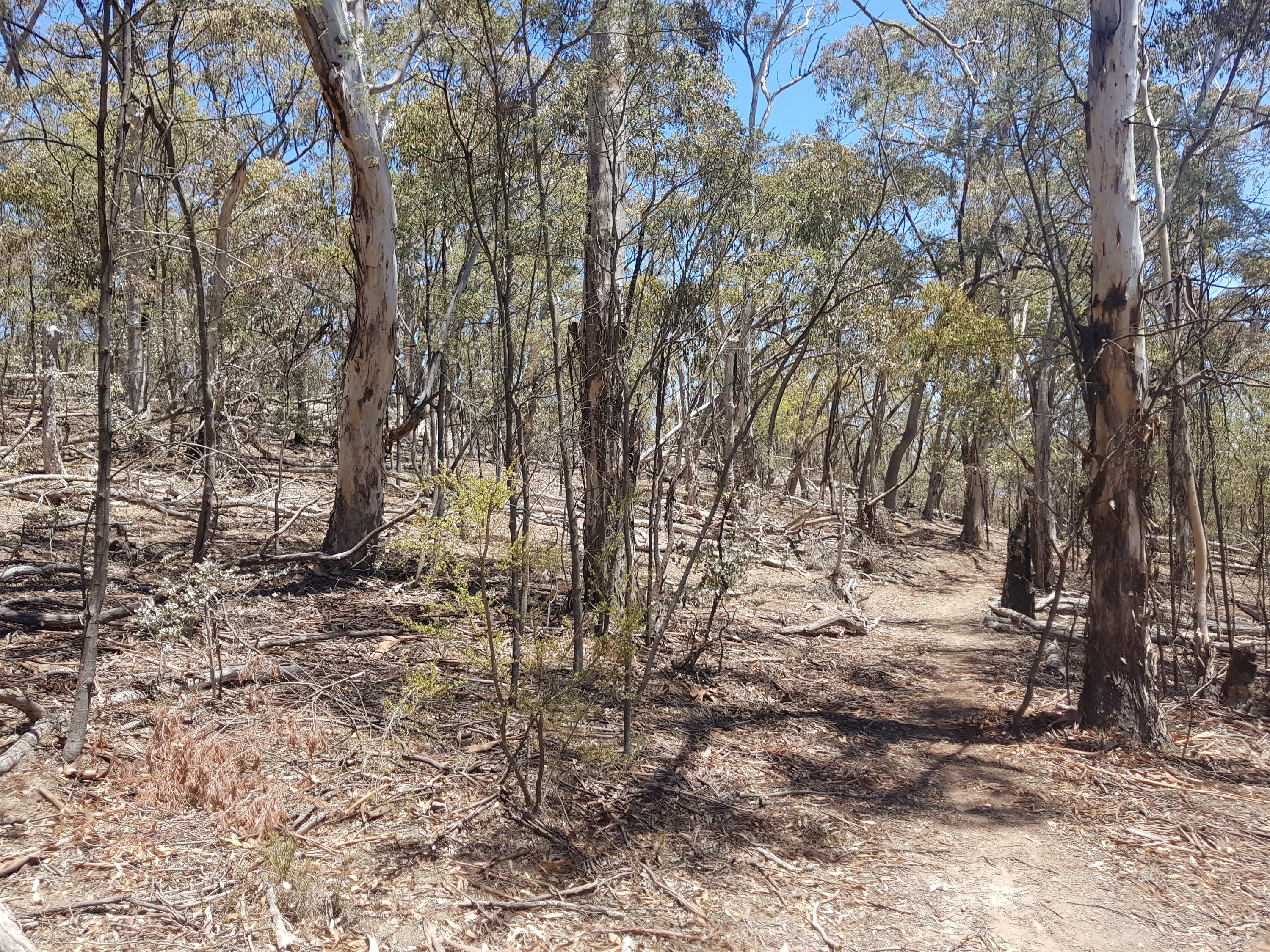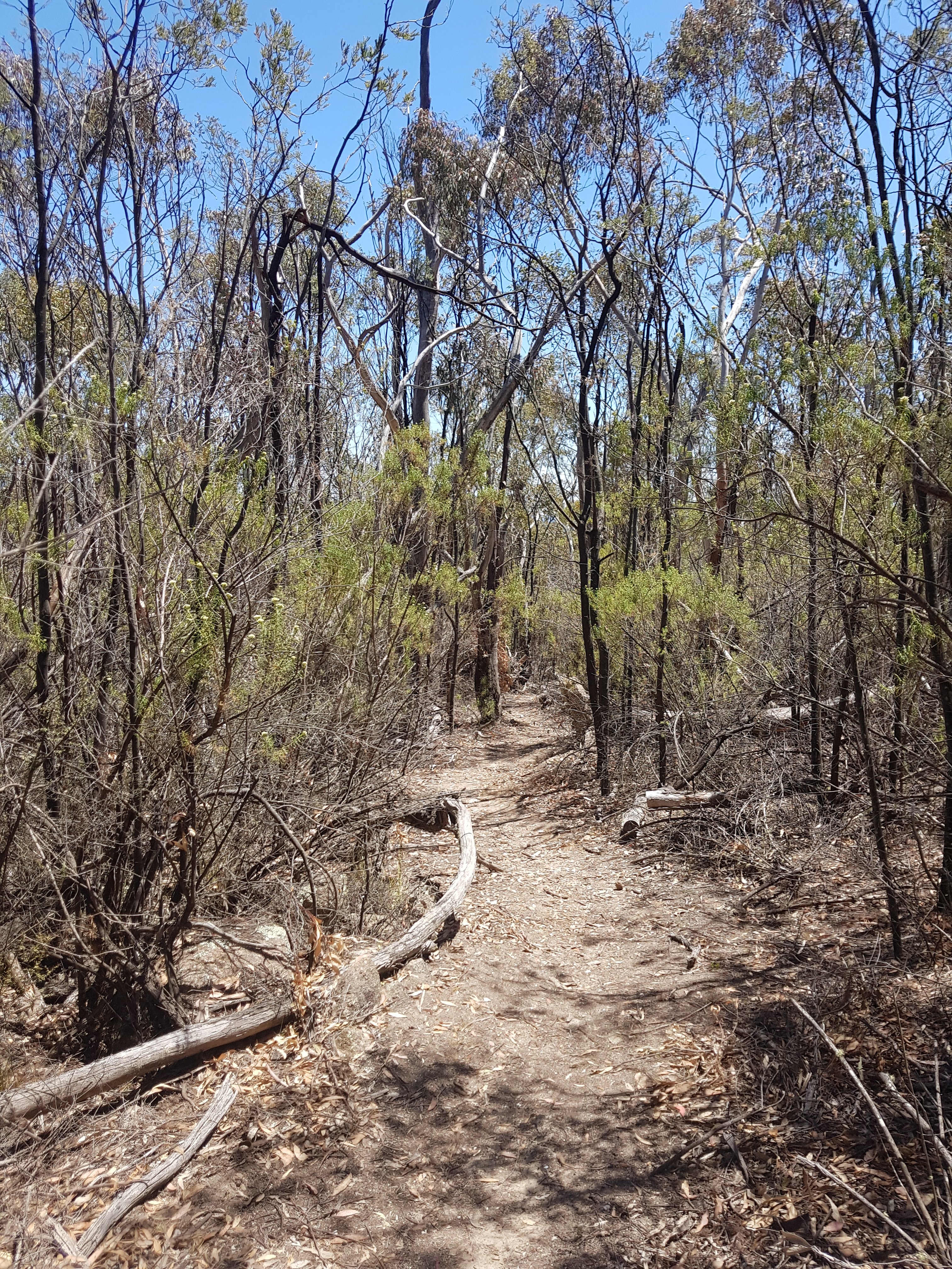 It took awhile to get into my groove. My hat kept rubbing my backpack making a super irritating noise, the solar charger on my phone kept going on and off although that was soon fixed when the connector broke rendering it unusable – no need to worry about it turning itself off anymore! But after awhile l settled into it and it’s amazing. I met a couple of lovely women who were doing the climb to Mt Tennent. They were super supportive of my mission and it reminded me how great girl power is! I suspect they may be some of the few people I’ll meet (other than Jub!) before Thredbo. After rounding Mt Tennent, the track opened onto a fire trail in an open valley. Kangaroos hopped away lazily, probably irritated I’d disturbed them on such a hot day. There are no people sounds out here except for my own foot falls. What a truly lovely thing to be doing – spending a month wandering through the bush alone. Gratitude.