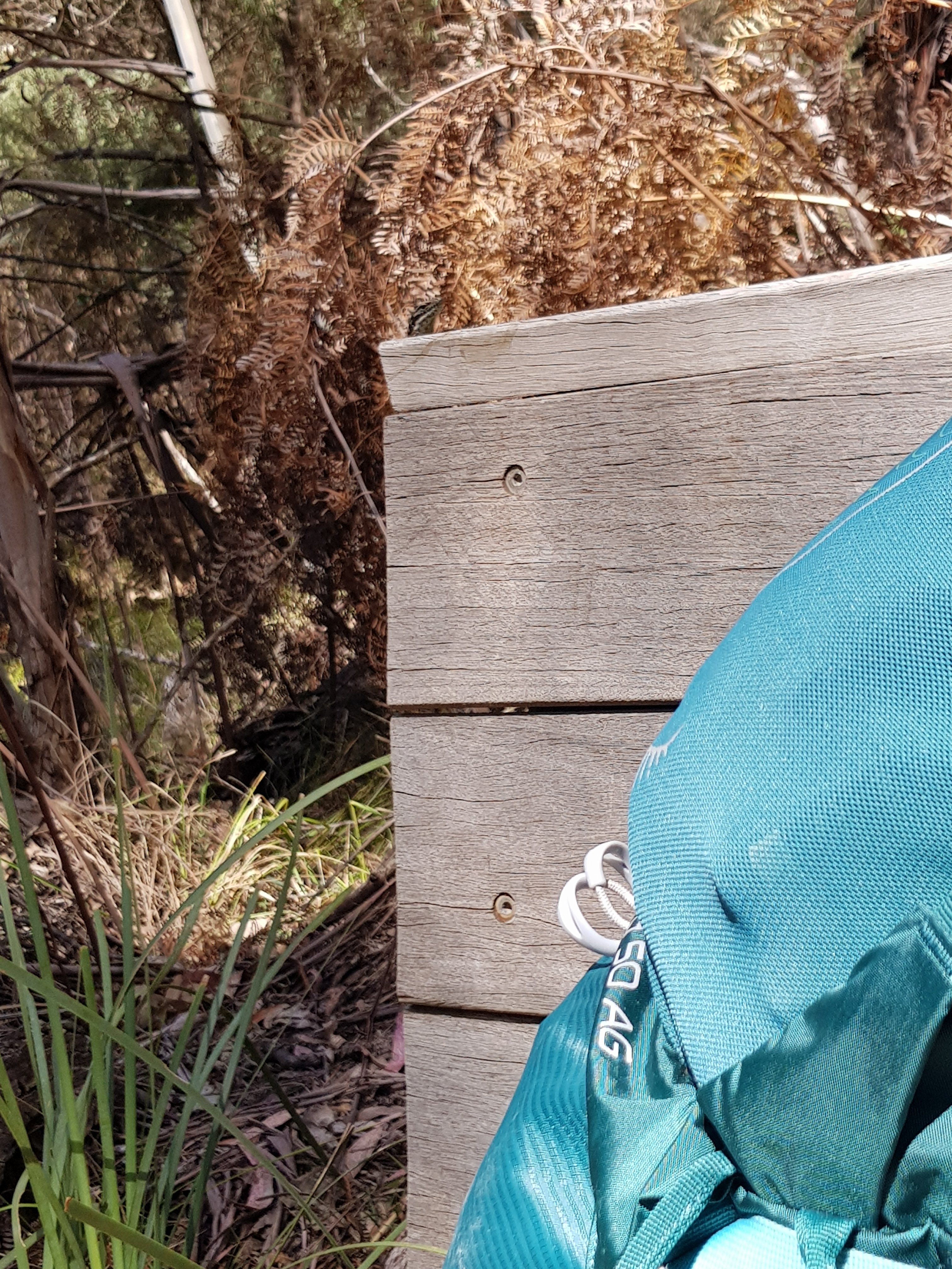 The afternoon was really lovely, meandering along a leaf littered bush path. And the end of the afternoon was the loveliest – arriving in Honeysuckle Creek campground to find a pitched tent and a hammock swinging between two trees and Jubble not far away.