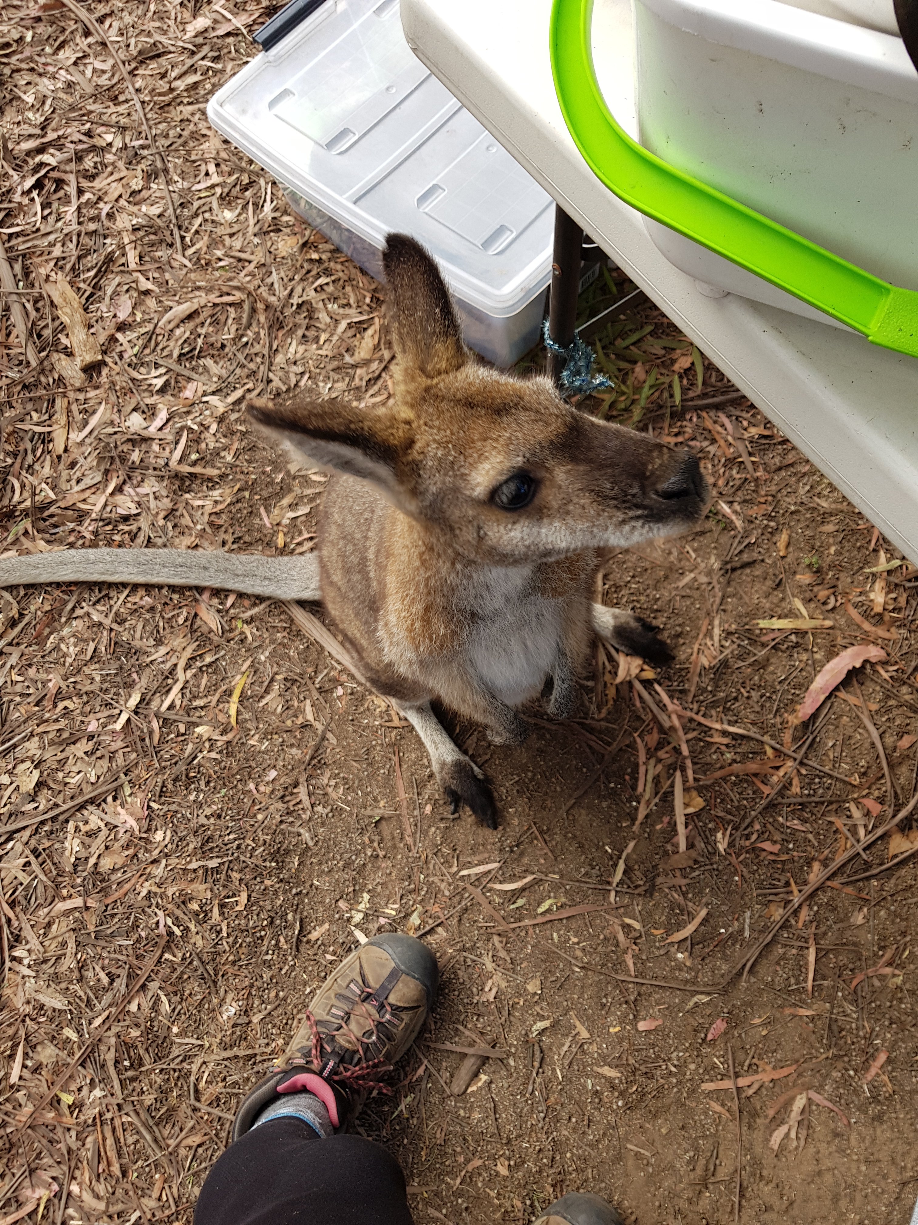 Our day started out with a visit from a friendly wallaby at breakie time. It was very thankful when Jub poured some water into the ground – it lapped it all up!