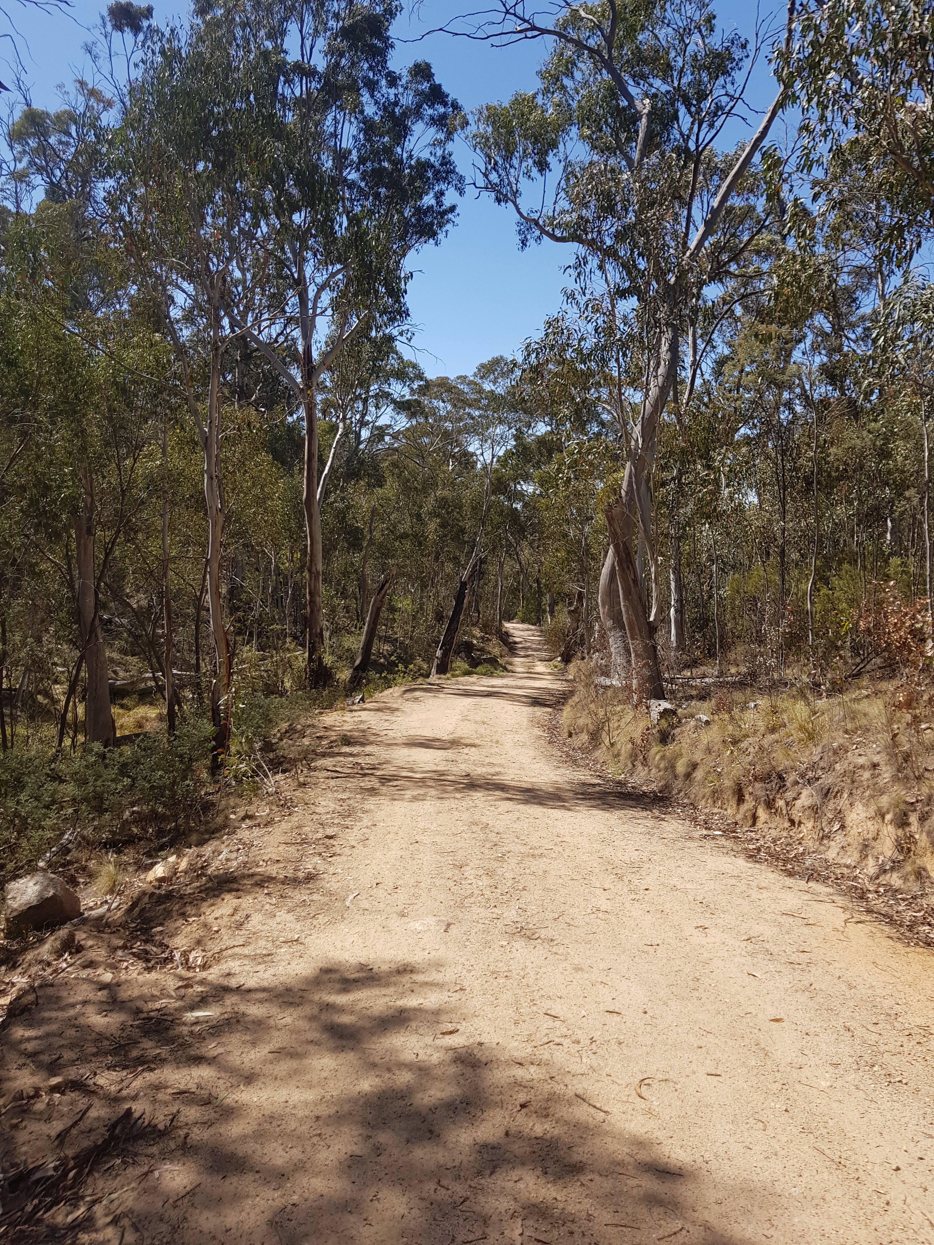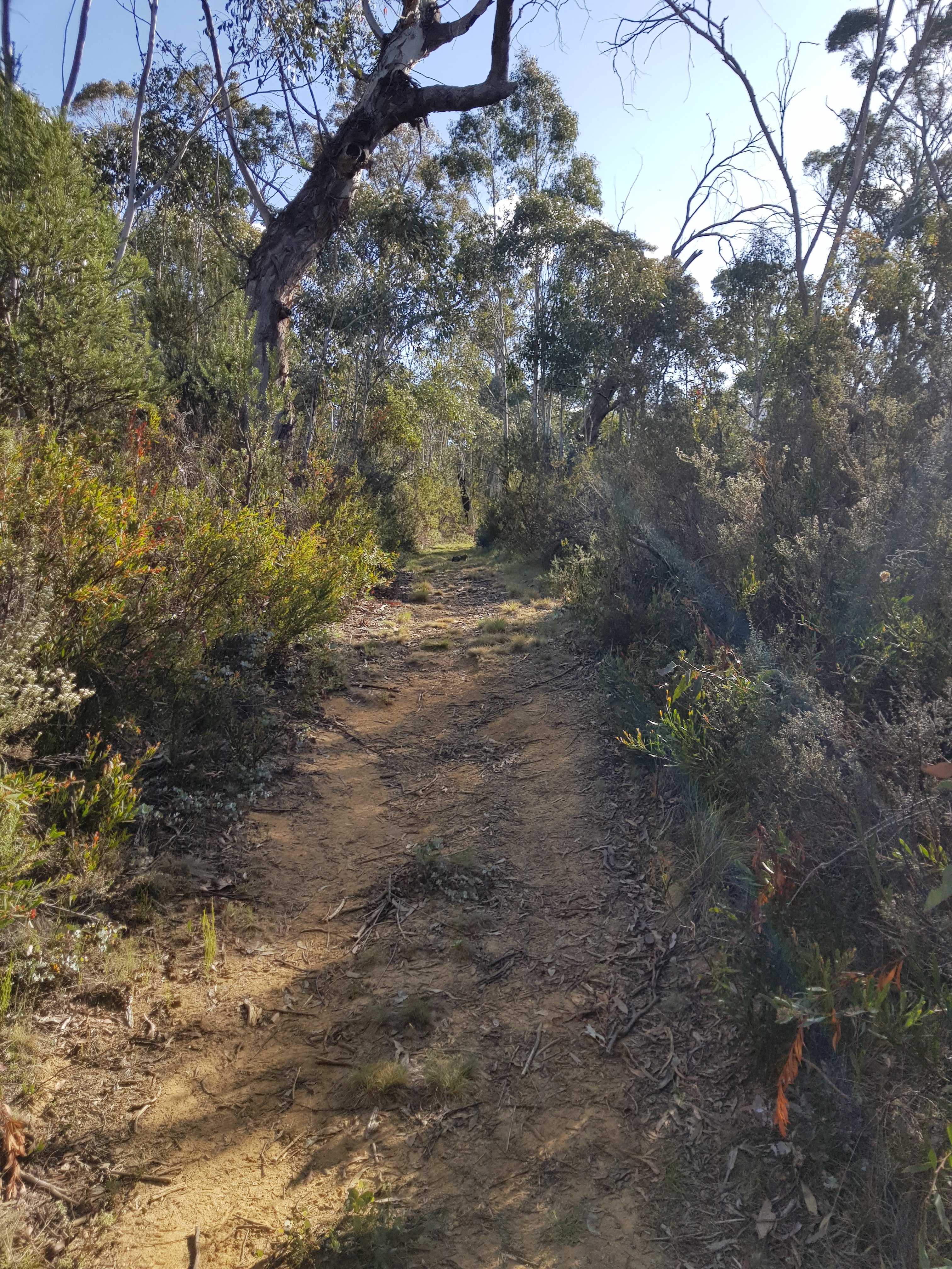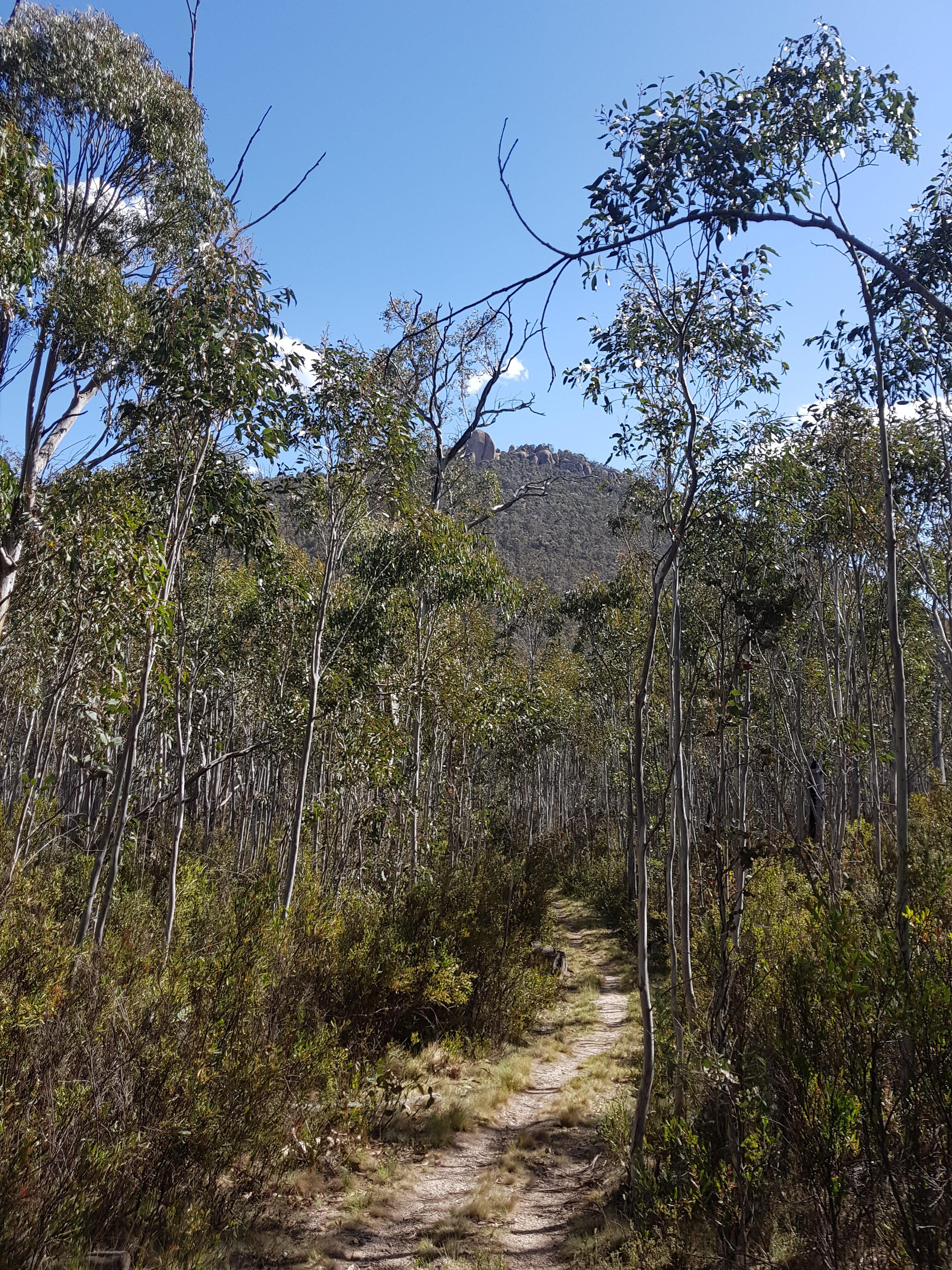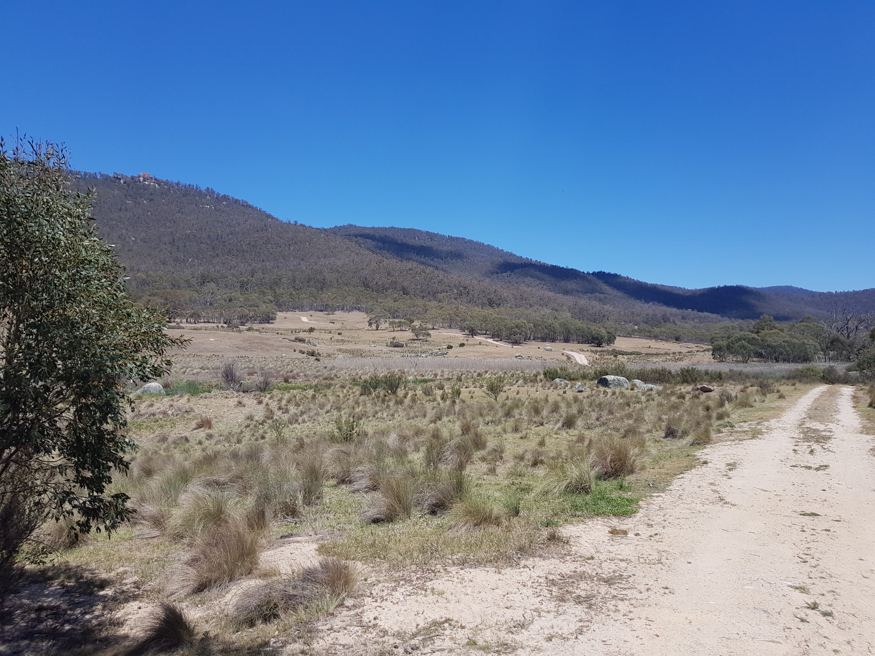 Soon after making it to the top of the hill, the trail left the gravel road and headed into Bimberi wilderness area on a bush track. I collected my first water from Sawpit Creek and was pretty chuffed with myself! It was a pretty small bit of water – I imagine there won’t be any left in another month or so. The track up to Cotter Gap was really lovely and super steep. I made it up by counting to 100 with my snake stick in one hand, then changing hands and starting the count again from 0. I understand why someone said the hills are a bit anticlimactic. At Cotter Gap which was the high point on today’s walk at just under 1400m, there was no amazing view and no mark that you were at “the top”. Just wandered along for awhile then proceeded down an equally steep hill on the other side.