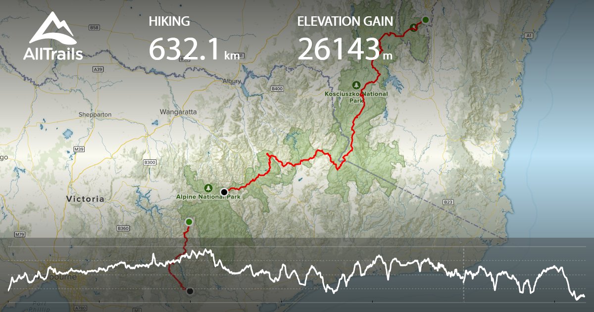 I missed four days of walking (70kms) from Benambra-Corryong Road to Langford Gap. I chose to skip Benambra-Corryong Road to Sunnyside because fires had started in the area around Omeo and we made the call to leave the area. The track was closed from Sunnyside to Madisons Hut site due to fires, so there was no option to do that section. We also missed the last three days from Easton Dam to Walhalla (57km) due to a car accident. We arrived back in Sydney on 30/12/19, just ahead of the horrific fires that started in the region we’d been in shortly after.