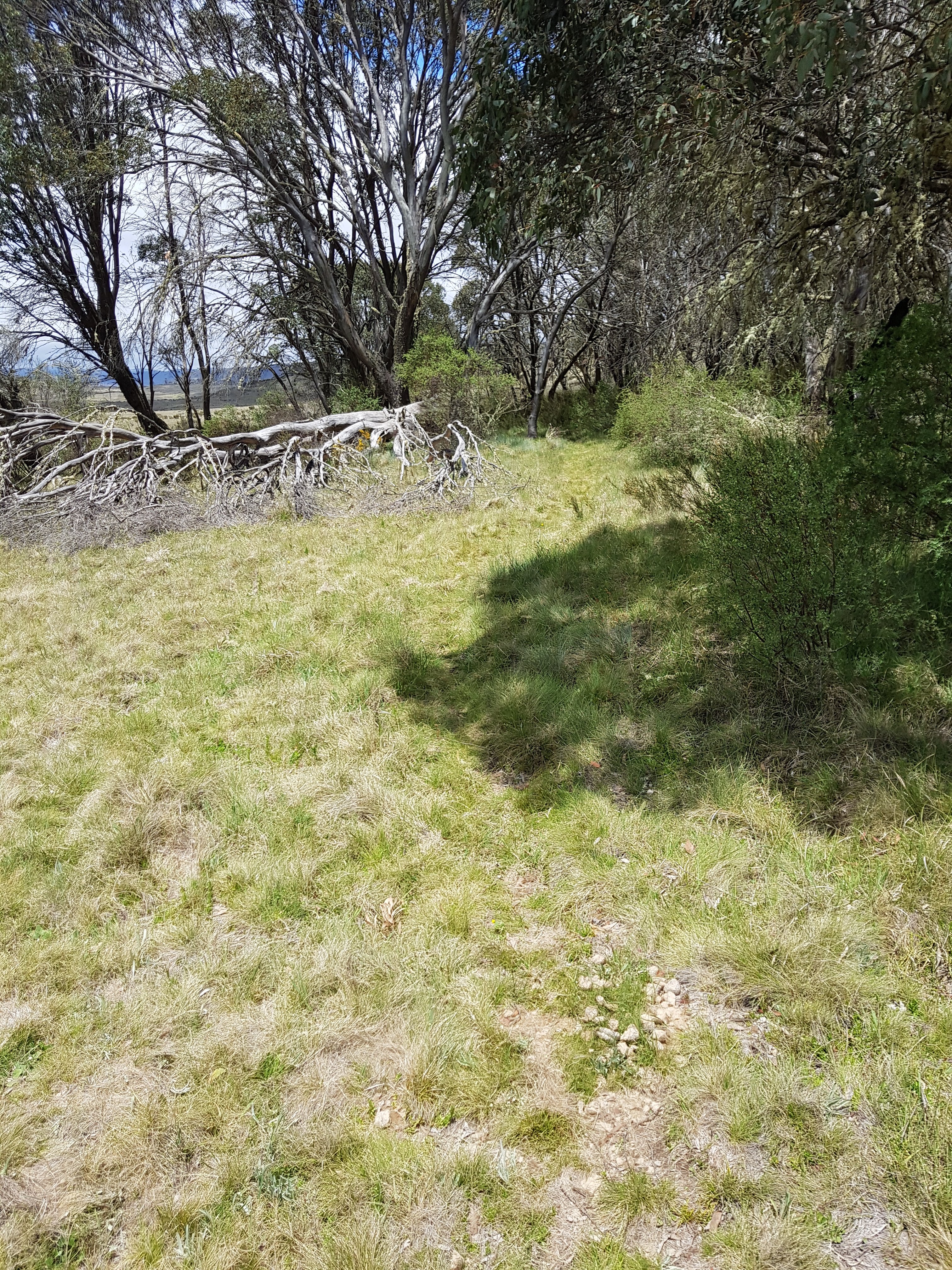 Today was gentle ups and downs through open country. It started with a visible path that was easy to follow. For awhile it followed an old telegraph line. It was super windy. Definitely not taking any layers off today. The path was really easy to follow. After awhile l realised l could see my departure point. The road we’d driven along, where Juber had dropped me off. I was thinking how funny that was that they’d designed the walk that way when l met a water crossing. Really?? Already?? No, I’d accidentally followed a brumby trail! I had to climb back up the hill and find my last trail to head back off on the right direction. So the trail designers didn’t point the track back to the road or my departure point. Well done, well done.