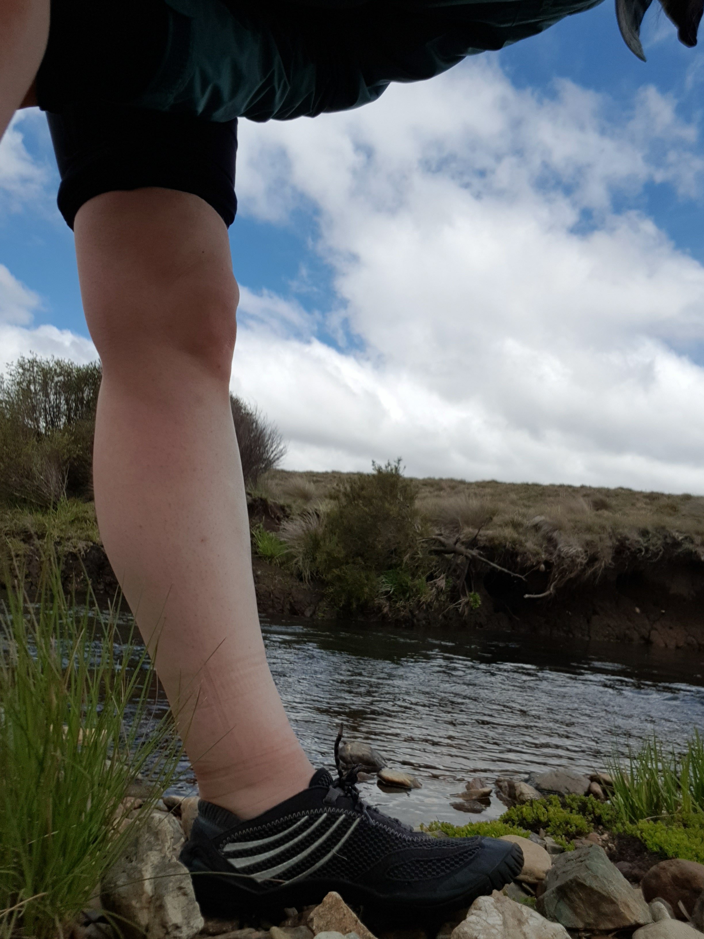 A lot of the walk had no clearly defined trail. There were occasional markers and you just had to point in what was hopefully the right direction until you met the next one. I used my app a few times to make sure l was heading in the right direction. Shortly after lunch l met a guy who was walking from Kiandra (I’ll be there tomorrow night) to Tharwa. He warned me I’ve got a few crossings coming up starting with the Murrumbidgee. I’d really been hoping there was a log bridge across that one! I followed a well defined trail downhill wondering if l was on another brumby trail. It’s struck me on this walk that brumbies don’t walk nilly willy anywhere. They appear to like to walk on the trails we walk on. That’s evidenced by their hoof prints on almost every trail I’ve walked on as well as their poo everywhere. At the bottom of the hill was the river. And yes, it definitely involved taking my boots off and crossing. I spent a while climbing through the grass looking for the best spot. Then l changed into my river waders (previously known as tree climbers, the purpose they were originally bought for), rolled up my pants and psyched myself up for the cold water! The water was definitely cold. But one of the great things about walking through a cold river is that when you put your socks and boots back on at the other side, you feel decidedly toasty! I felt super proud of my first (albeit not remotely challenging) river crossing and how Australian that it was the Murrumbidgee!