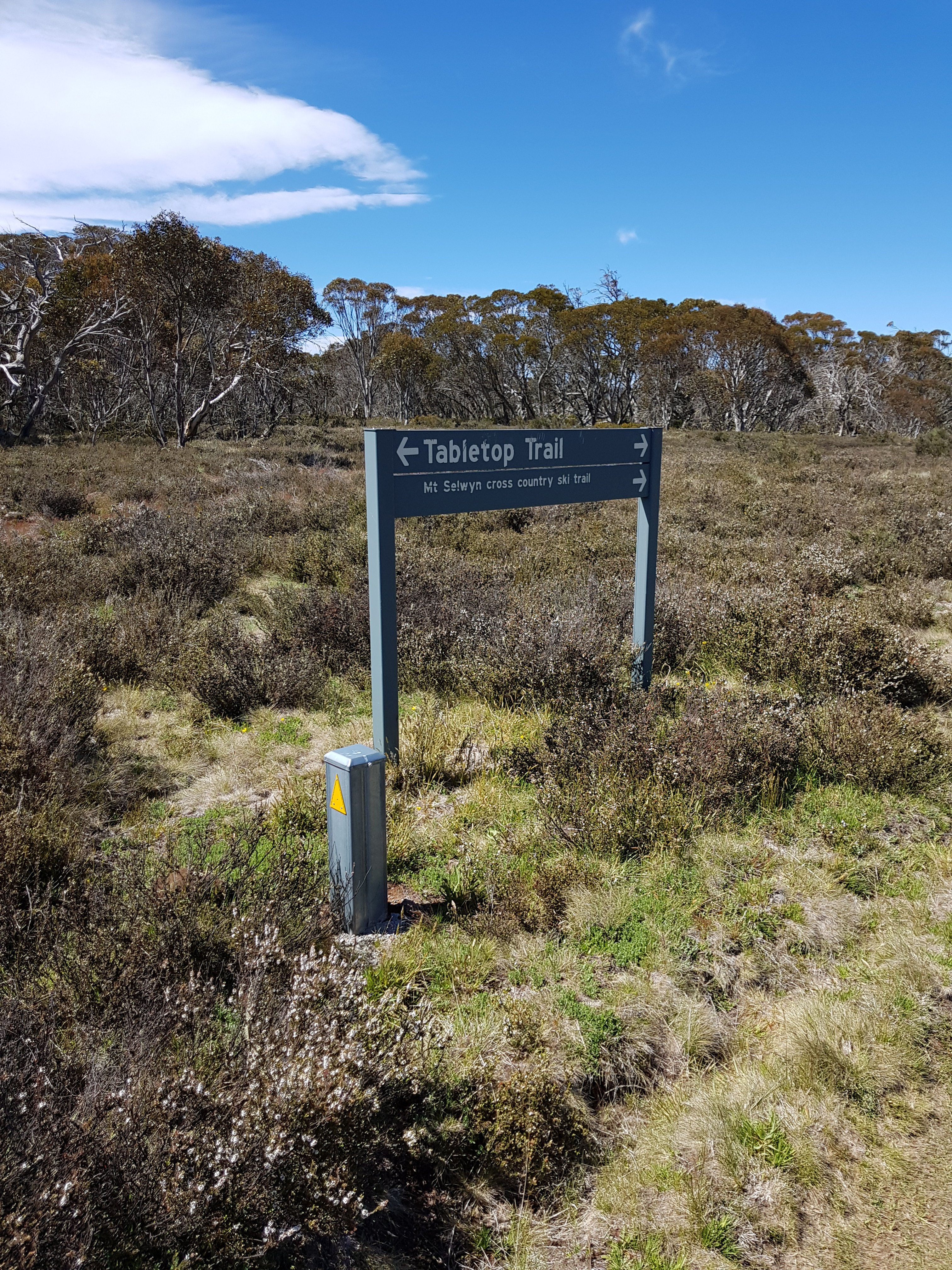 The trail started straight up Tabletop Track past some of the old buildings of Kiandra. When I was right up the top of the hill I saw Jubble drive away heading off to stay in a lodge in Thredbo until I arrive there in five days. Hhhmmmmm. Why am I doing this again?? The trail followed the Selwyn Cross Country ski field across the top of the mountain. Talk about windy. And beautiful. It’s amazing how when there’s the slightest bit of relief from the wind, flowers grow. And on this rock, nature threw a bit of love my way in the form of some lichen (I think). I took it as a sign I was in for some great days ahead. That and the fact that the weather forecast is totally shining on me. Getting warmer and warmer with no rain or snow forecast as I pass through the highest section of the track. Thank you.