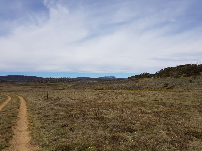 After climbing off the plain I hit Tolbar Road which was a bit of a slog. The views were still great. I was marching along that road for quite some time, looking at the big hill ahead when I suddenly came across Grey Mare Trail, my turn off. Woo hoo! Careful what you wish for. Boy was it windy. I need a bigger word for windy. Cold and straight in my face all the way across the plains.