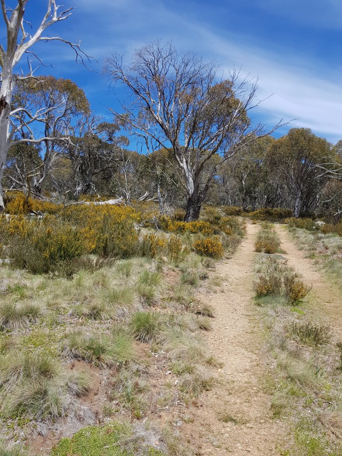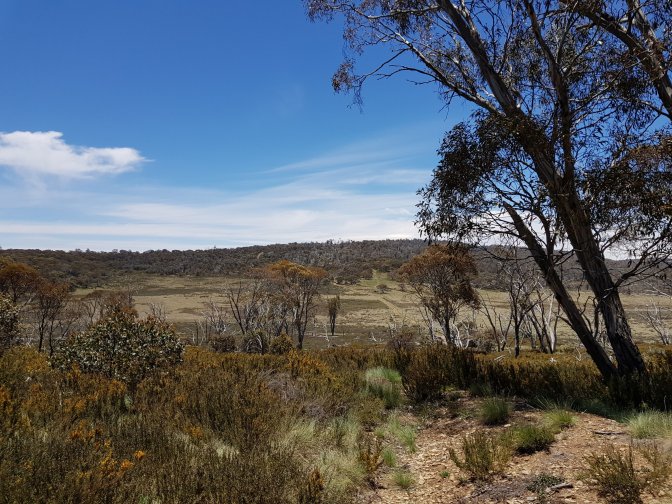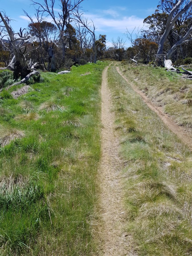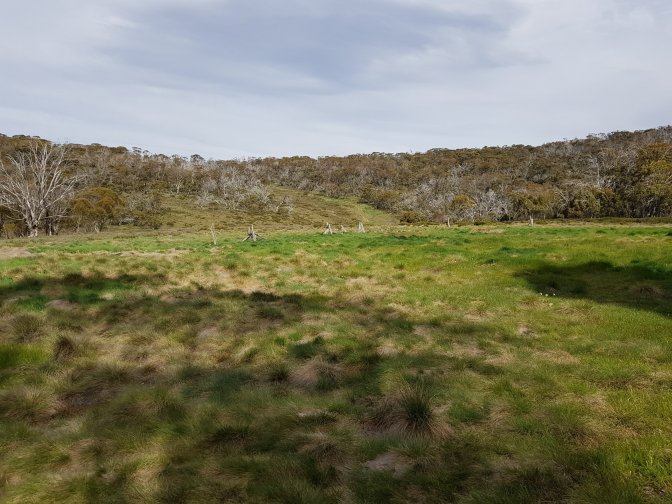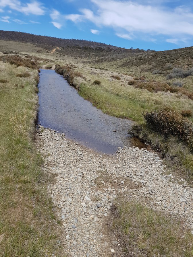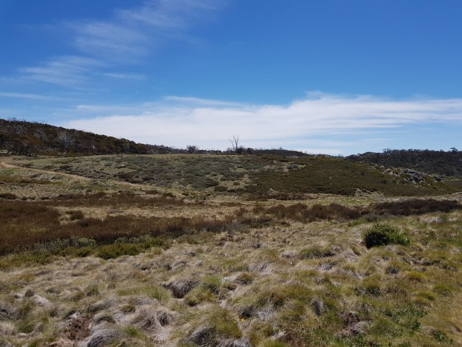 I met a couple who’d started the walk in Walhalla. They’d driven all the way from Brisbane and driven 3,000kms including setting up their food drops! They had been part of a group of four but the other two had pulled out. They were chasing Mitch and Brett – wonder if they ended up catching them. They confirmed no problem with crossings ahead and also gave some great advice to push on to O’Keefe’s hut this afternoon if I could rather than stopping at Farm Ridge Hut site. What fantastic advice that turned out to be. Thank you!! If l was going to make it all that way (27kms), l needed to get moving. I walked as fast as l could across the plains, up the hills and back down the other sides. I stopped for lunch on the path briefly before powering on.