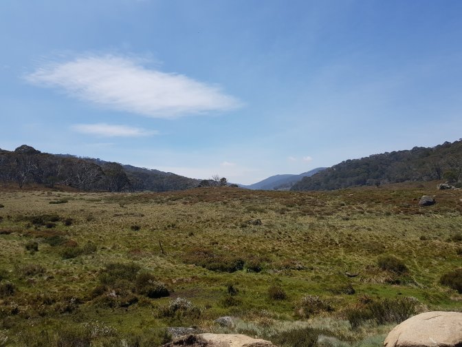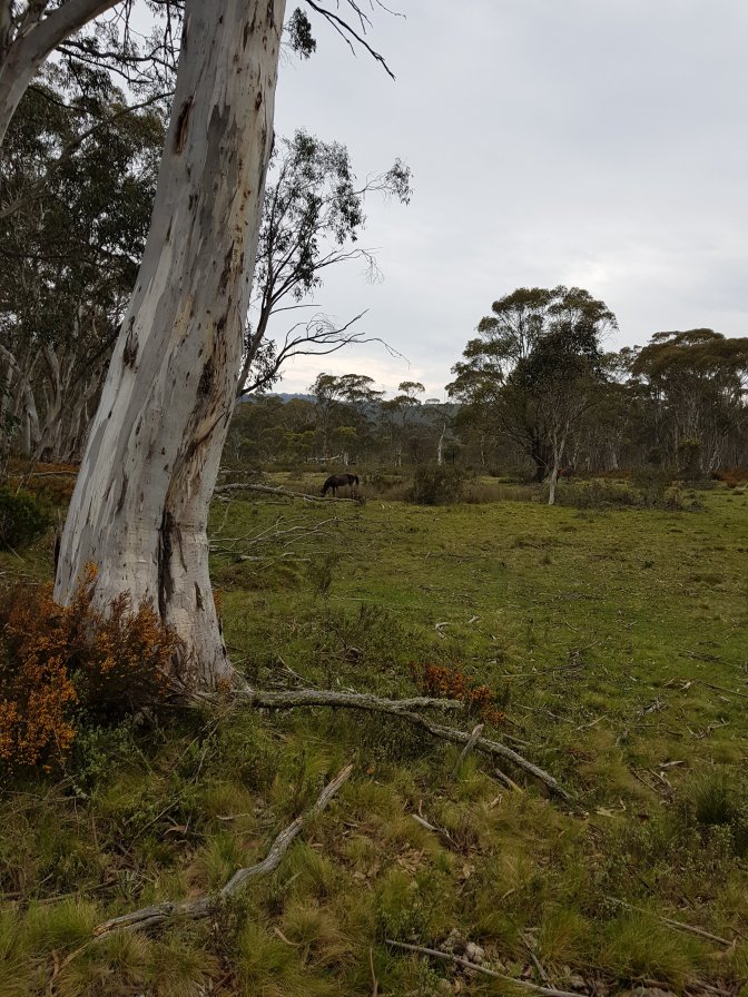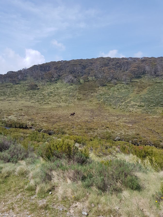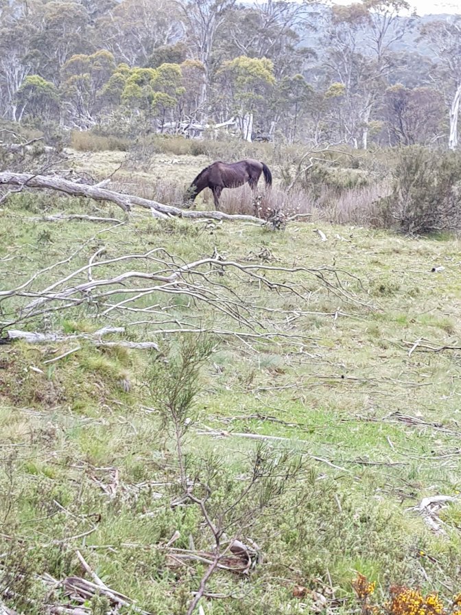 I was low on energy for most of the day. I struggled to get back into my hiking groove and wondered why I was doing this, will I really make it the rest of the way. But all you need to do is take the first step and keep on putting one foot in front of the other and you get where you’re going. It was a markedly different trail today – clearly defined management track the whole way. Part way along I met a family of three and we walked to Cascades Hut together. The conversation was a nice distraction from my own head. Today on the trail was the first evidence of big brumby numbers for the first time in days. They obviously don’t go right up into the high country.