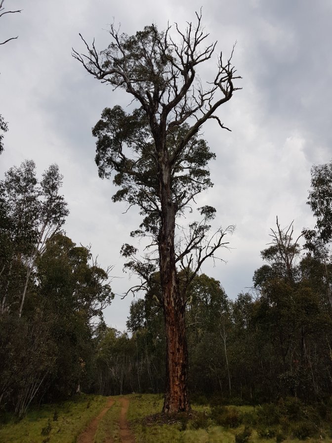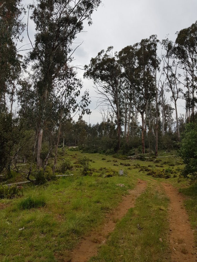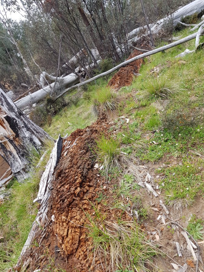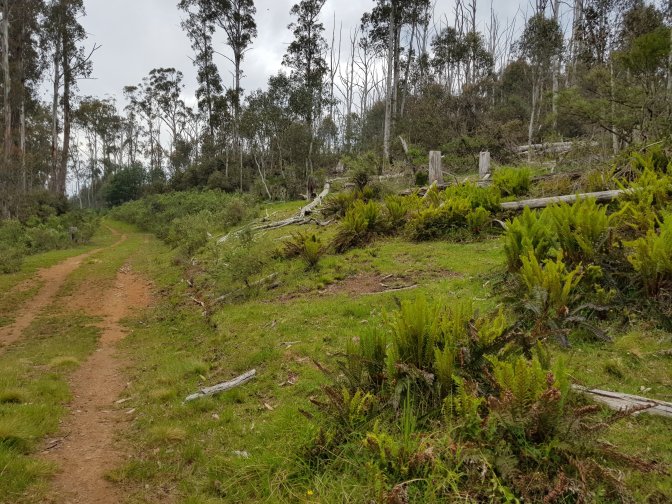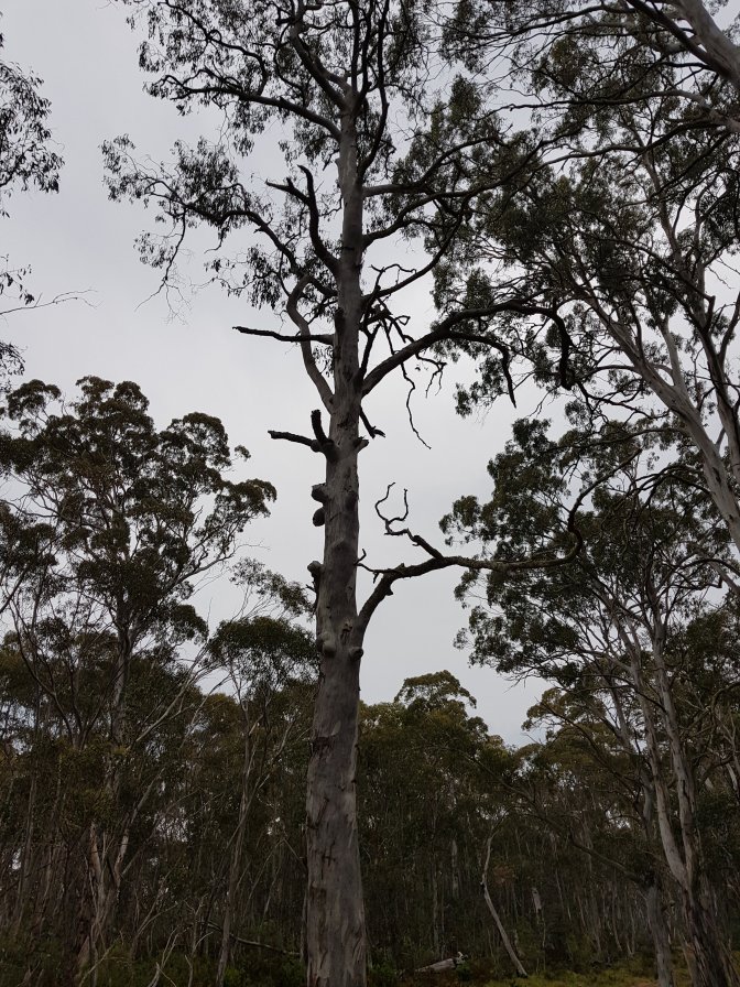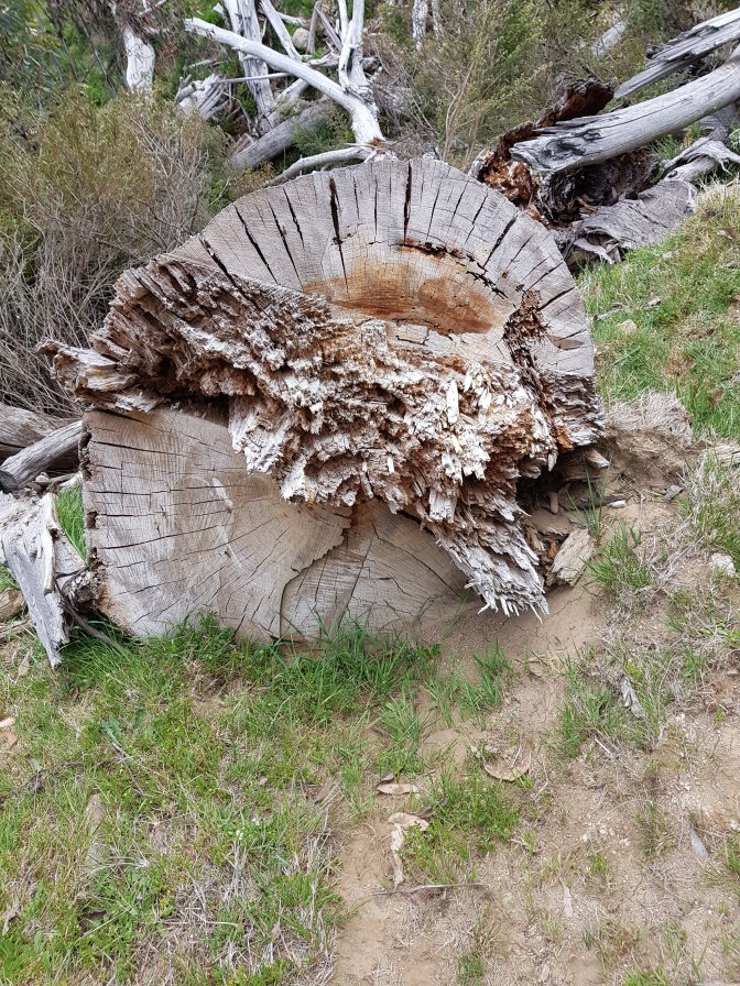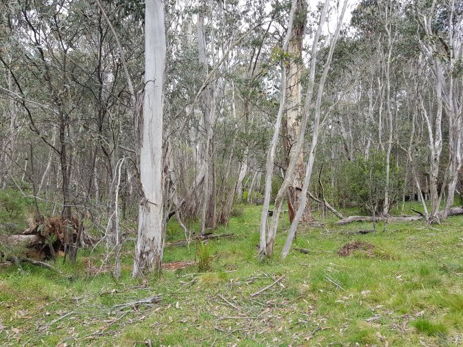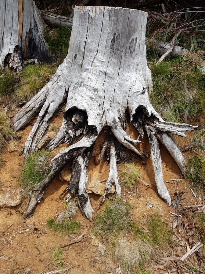 I left the three at Cascades Hut and continued on towards Tin Mine Huts. The landscape changed markedly. There has been huge clearance of all the fire damaged trees and it felt like I was walking through a logging area for much of the next section. Interesting sign saying don’t sit, stand, camp or park in the area due to high risk of falling trees!