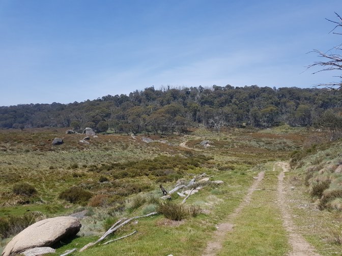 Bye bye lovely apartment in Thredbo. About a km after setting off along Cascades Trail from near Dead Horse Gap, I realised I’d forgotten my stick. I’ve grown very attached to it and couldn’t imagine continuing without it. I messaged Jub who came straight back and alas, no stick in the car. He went off to see if I’d left it at Dead Horse Gap.