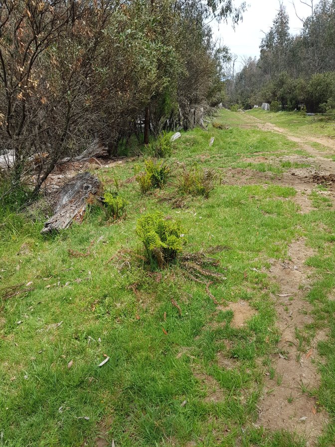 After lunch the landscape changed again. It was very green with large patches of ferns and flowers. Along the way a NSW RFS truck drove up behind me. They were heading to my destination doing fire prevention work. Whenever anyone asks me how I’m managing logistics, I tell them how lucky I am that my husband is meeting me along the way and he’s my mobile food drops and chief company keeper. It’s a bit like the hiking equivalent of glamping but carrying a heavy pack and eating dehydrated food!