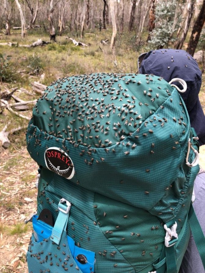 The night was pretty uneventful. No horses galloping past my tent, no munching or whinnying. I must have picked a tent location out of the main thoroughfare. It was also one of the first not super cold nights. It was a pretty hard track to get to the campground with Jub. Very steep up hills a lot of the way. I came to quite a nice arrangement with all the flies, my fellow hikers. Once we set off, they settled nicely on my pack and didn’t bother me too much until I stopped. When I did stop, they’d all take flight and swarm around me. Apparently my legs are very delicious for flies. During breaks from walking many would cluster on my legs until it was time to get going again when they’d resume position on my backpack. It was pretty low kms which was a nice change, only about 14kms, and l was back at the Juber-mobile in time for lunch. Jub parked his car at a locked gate and from there put my backpack in his car and l walked the last couple of kms sans pack – such a luxury!