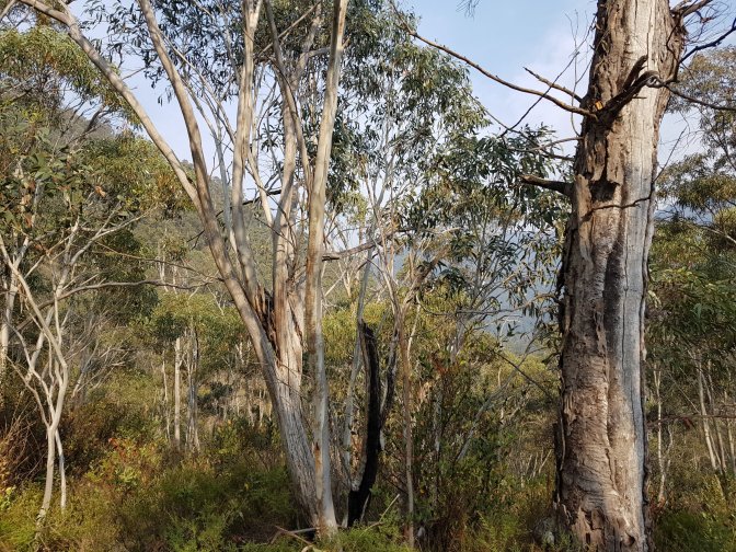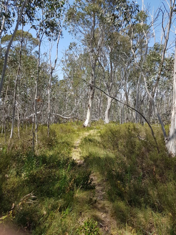 The March flies have been relentless again today. It’s fine when you’re walking at a decent pace but as soon as you slow down or stop, they’re on you. It looks like fire has been through the area recently, burning the bush on one side of the trail.