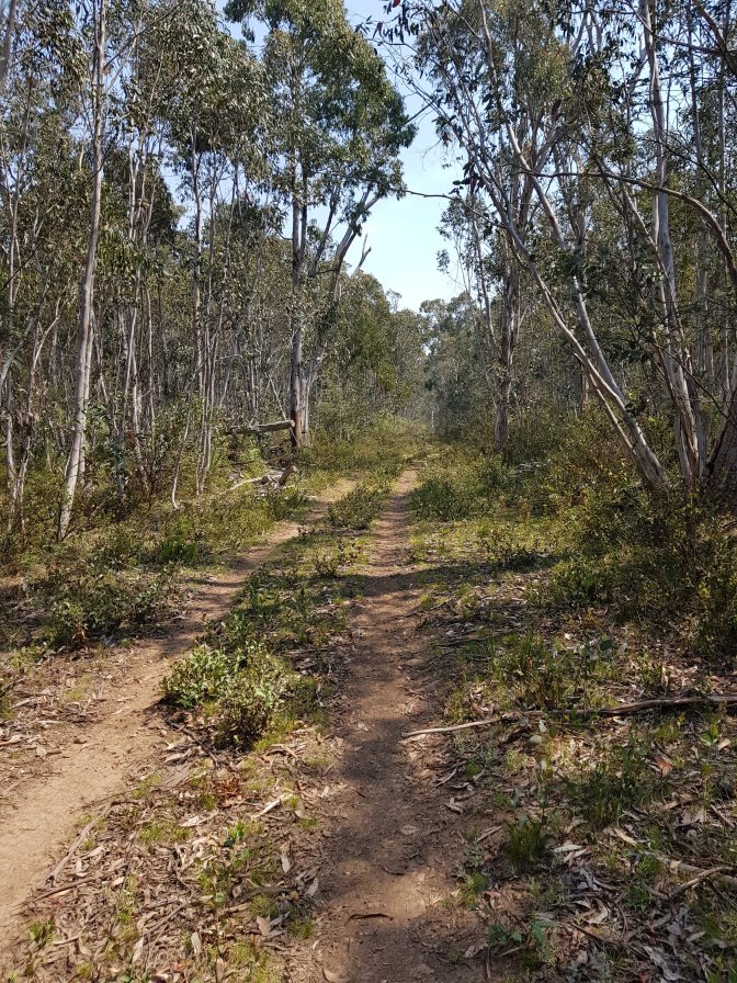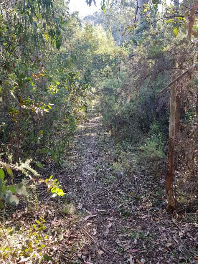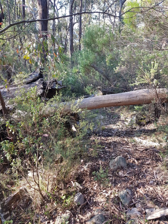 The actual bush track was lovely, although strewn with fallen trees and covered with spider webs. To start with I’d tried to avoid the webs. By the end I was going straight through them, stick first. By that stage I had a bit of a headache and was ready to be finished. Only 5kms to go! On the way down, particularly on the steep rocky section, I wondered what it would feel like to get back to Jub and tell him I’m done, time to go home. Or to stop on the side of the track, a few kms from our meeting point, and message him to say I couldn’t go any further that day.