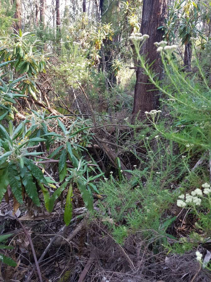 Because I was going so slowly, the March flies feasted on me. I regularly had to swipe away tens from each leg. The vegetation was so dense I often had no idea what I was walking on. I relied on the amount of noise I was making to scare away any snakes – it was hard to see where I was stepping. I pushed my way through or under or over everything in my path. It was hot and really, really hard work. You cannot believe how happy I was when I finally found the track. I’d added at least an hour onto my day. I messaged Jub from my GPS but I wasn’t sure he’d have coverage so may not get it (he did not in fact get the message until 10pm! Very unhelpful).