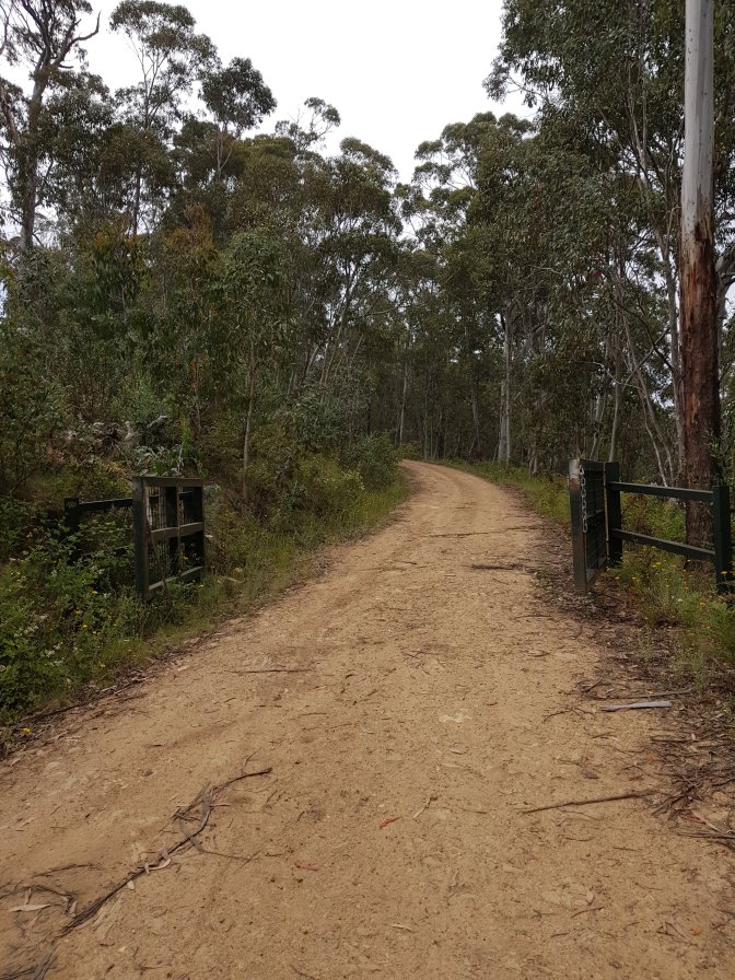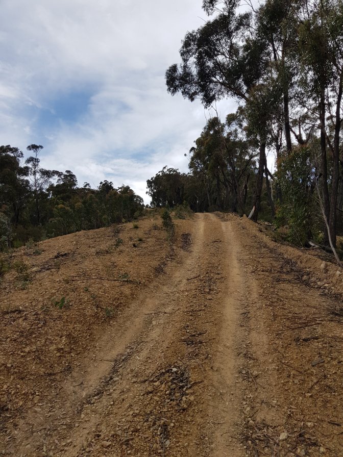 I was pretty low energy this morning when I woke up. I took it easy and was finally ready to set off by 9:15. After 400 metres I came across a sign saying a bridge near this afternoon’s meeting point was closed for replacement and I was concerned that would impact Jubble getting to me. I turned off flight mode and after a few unsuccessful attempts of talking to each other, he drove up. We stuffed around with maps for about 40 minutes before deciding all was ok and I’d continue (it ended up the bridge closure was on his road but given the bridge was still there and being a Saturday no one was there working to stop him, he decided to drive across it anyway). So it was now after 10am and I had 22kms to do. Most would be on tracks, but there was a section around Mt Easton that concerned me – the book inferred navigation would be required.