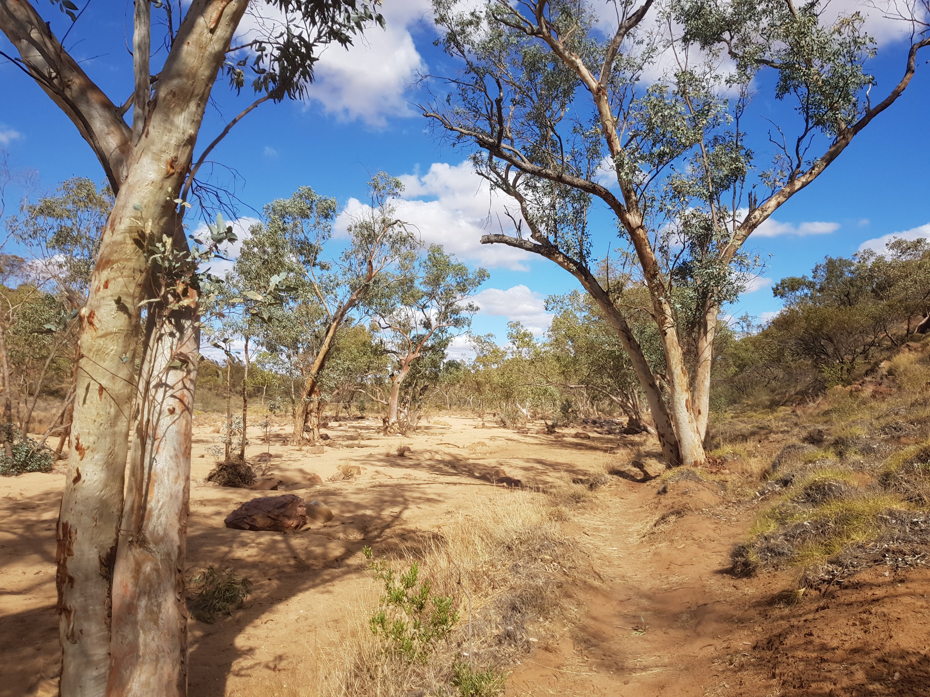 We walked along a bone dry riverbed to Redbank Gorge. The colours are stunning. When the sun came out from behind the clouds, it lit up one bit of rock you could see through the gorge into a bright, fake looking orange. Apparently you can explore the gorge with an inflatable mattress or tyre tube. You’d want to be braver than me for that – the water was like ice.