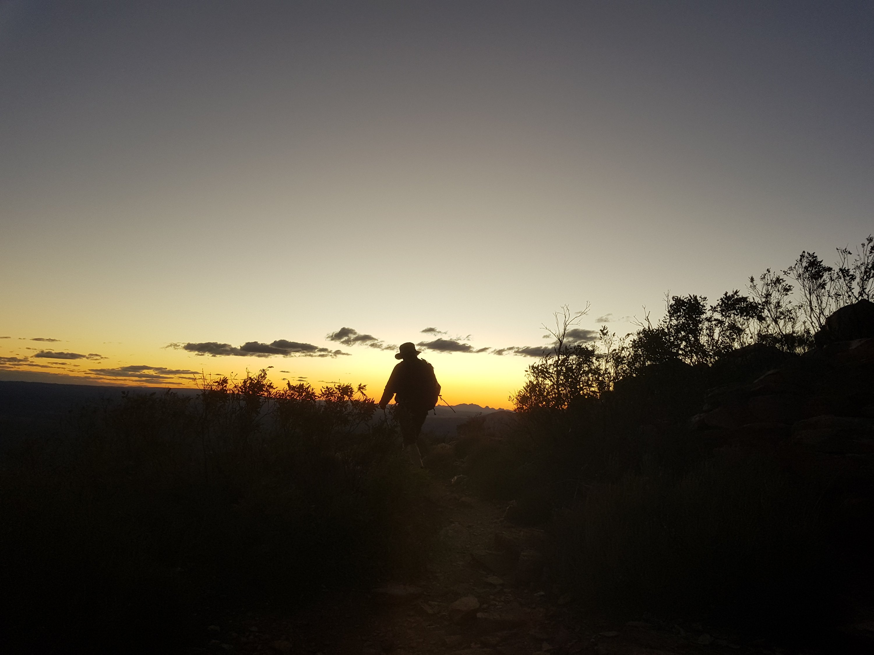 The second half of the walk was windy and cold, a sign of things to come at the summit. Up top it was freezing! Our plans of having some dinner at the summit quickly evaporated and we willed the sun to set so we could start the walk back down. The view was absolutely worth the climb. We could see all the way back across the ranges towards Alice Springs and off further west to NT’s highest peak, Mt Zeil and one of the most beautiful, Mt Razorback.