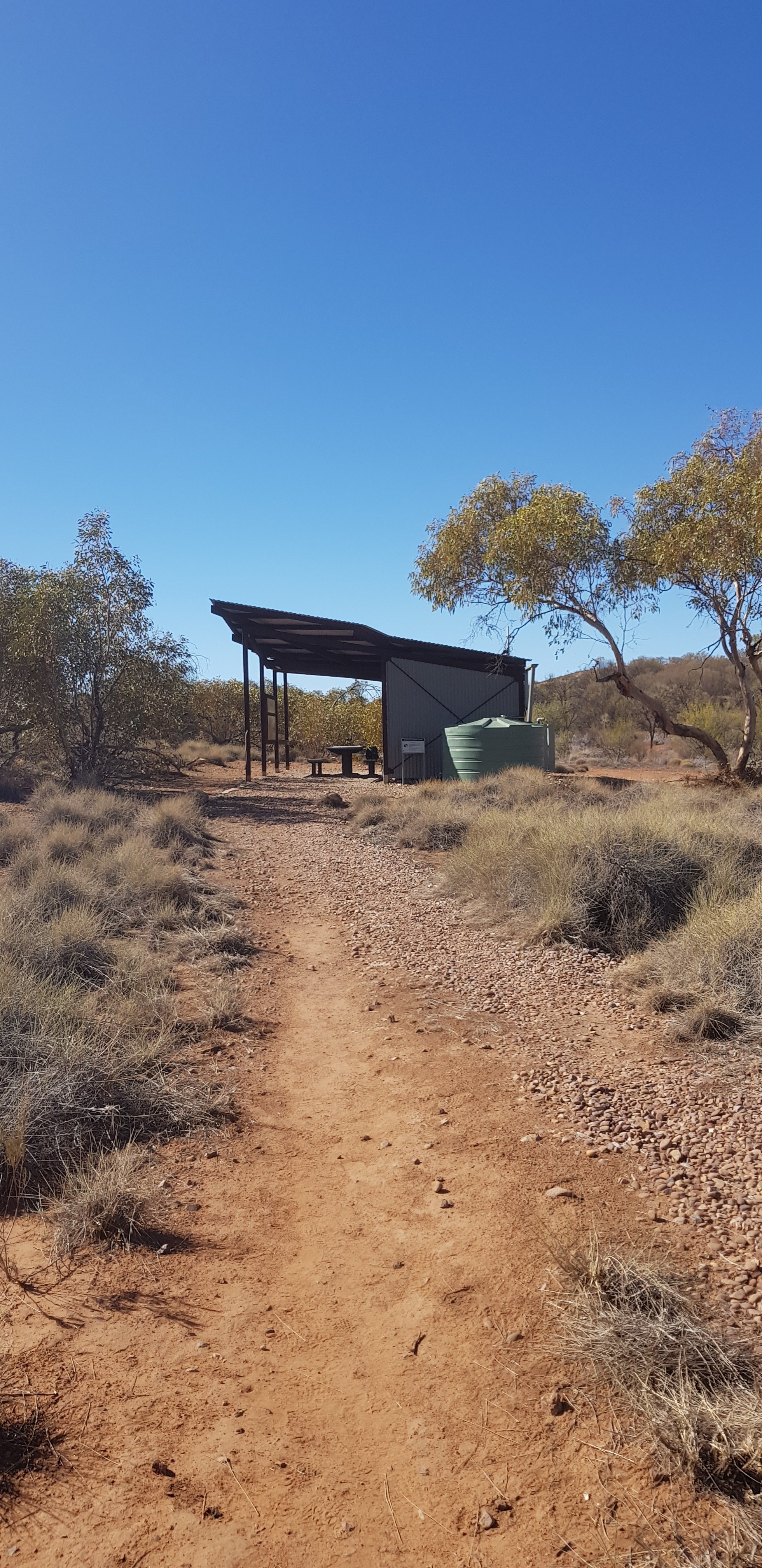 About 800m along the trail I came to the Finke River hikers camp. There was a guy laying on one of the tent pads just kicking back listening to a podcast or something. Turns out he was waiting for his girlfriend to return from doing her uni test. The hikers camps look so well set up and would be a great place to stay if you were through hiking.