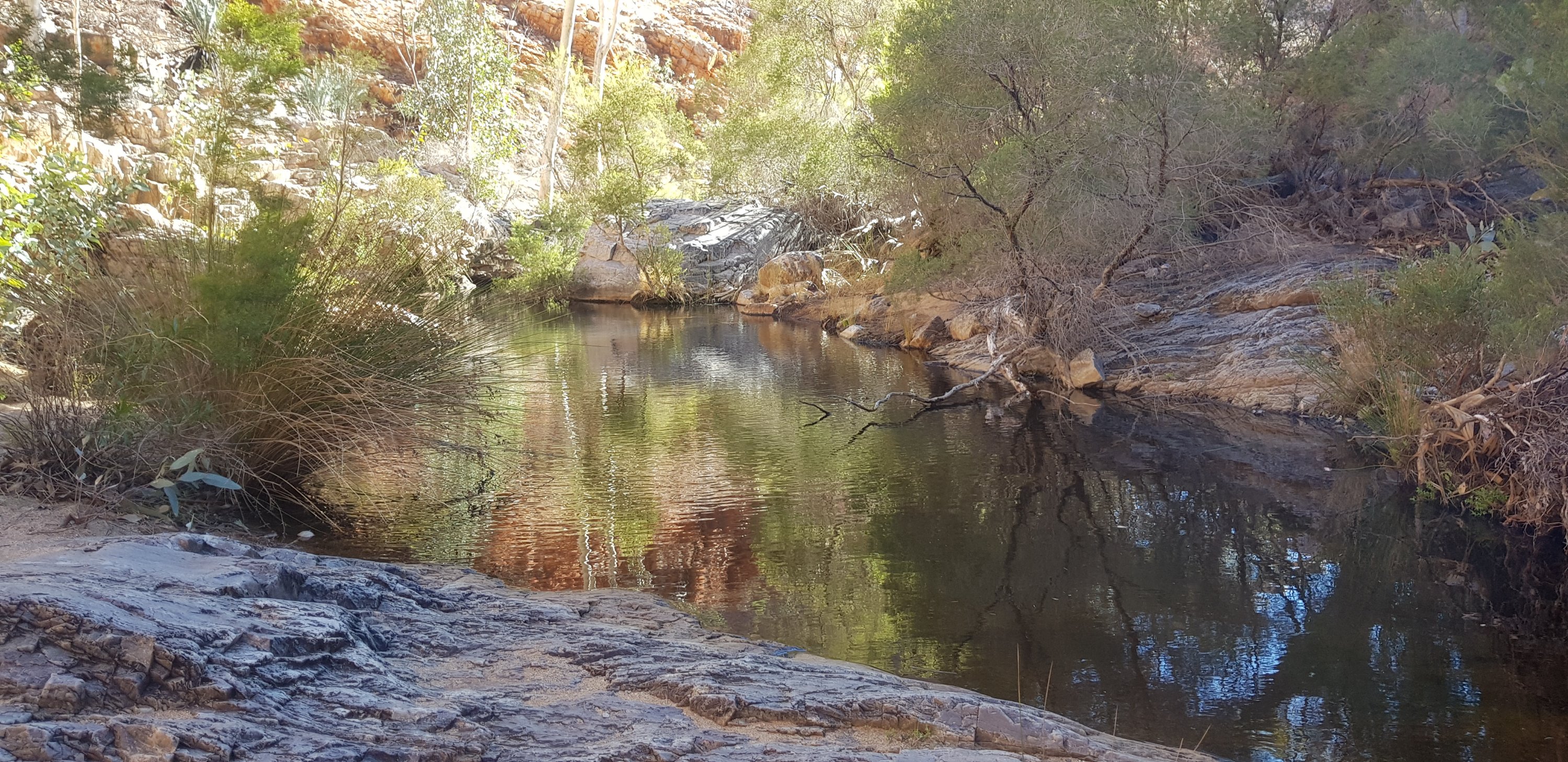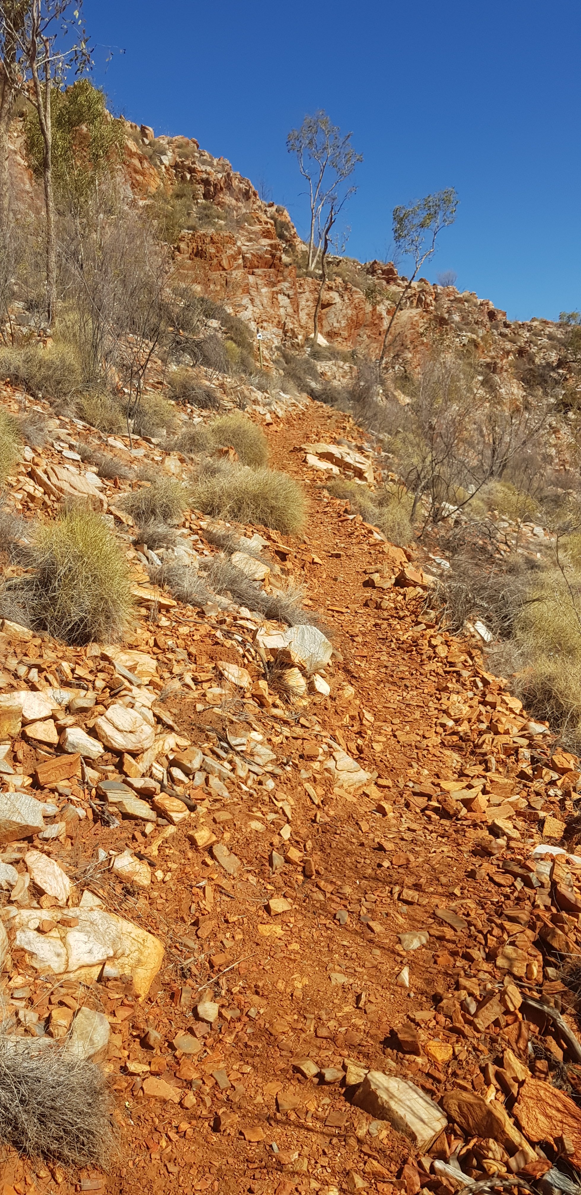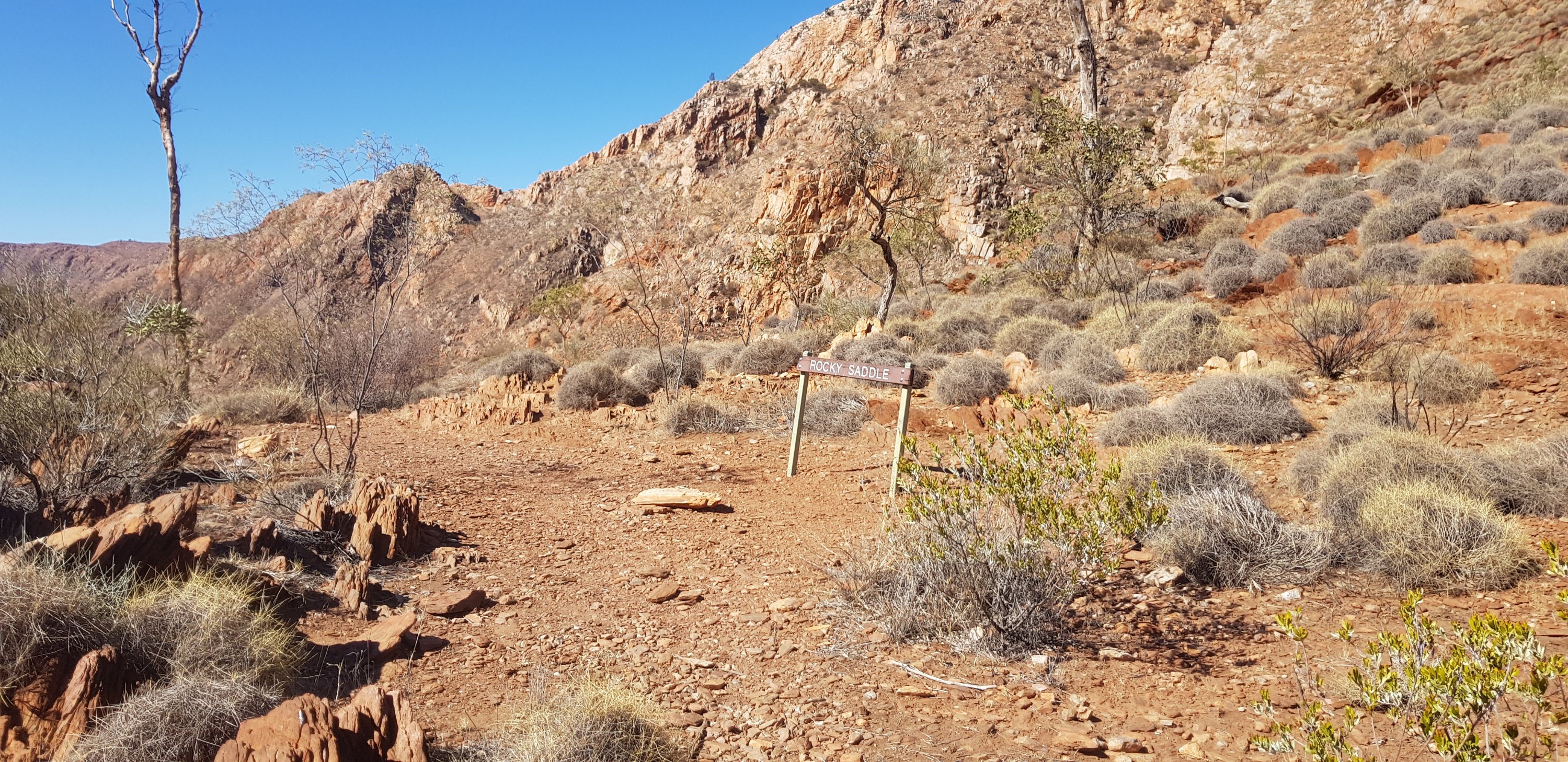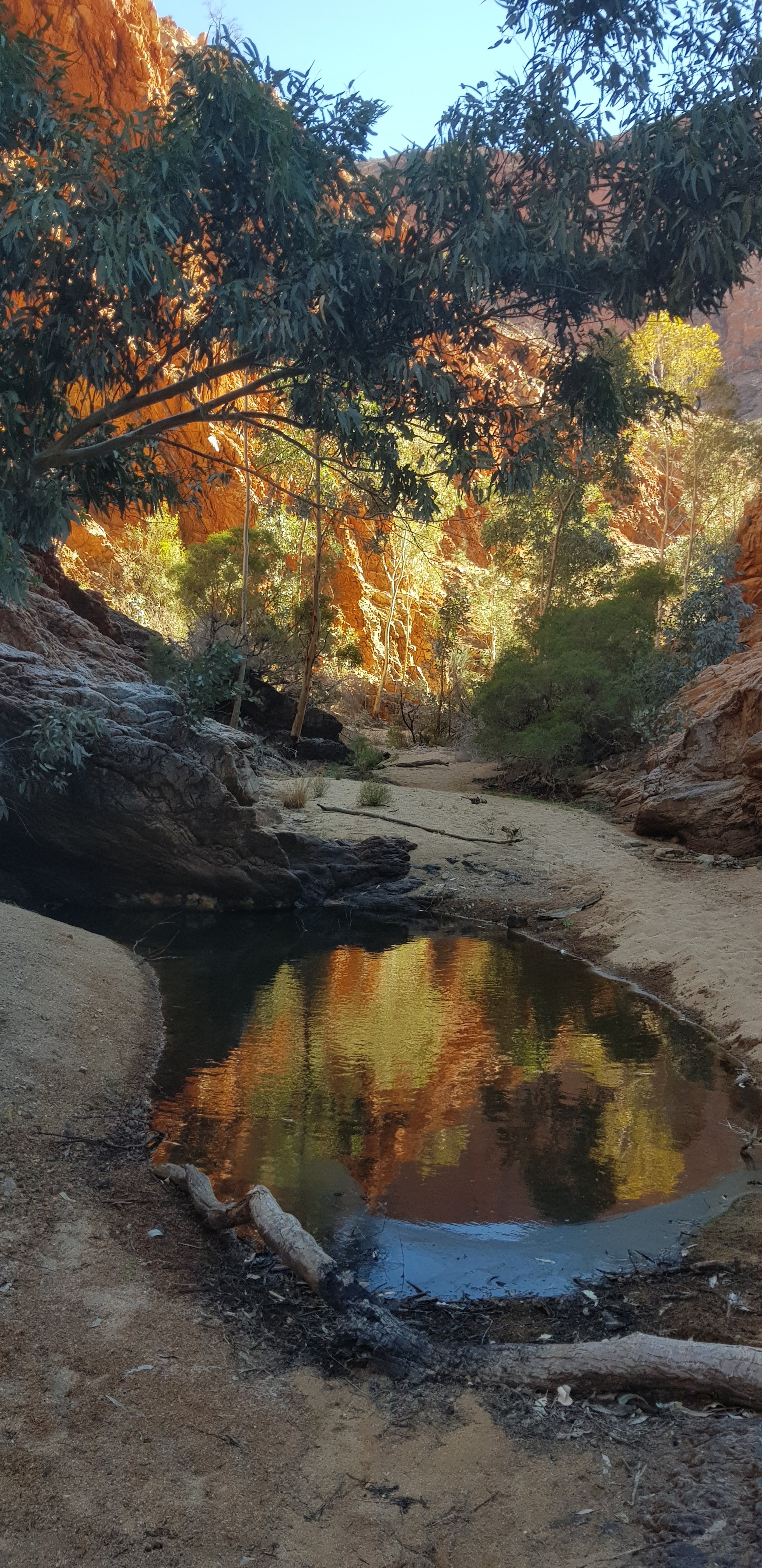 We left Alice Springs around 7am after a surprisingly delicious breakfast of avocado toast and mushrooms at the motel. It was half an hour back to the 4WD track and 50 minutes along a very rough track to get back to Hugh Gorge. We got back to the hikers camp and set off around 9am, with Jubbie coming along for the walk through the gorge. It was a never ending gorge and I felt like I might have spent the rest of my life walking through it! Jubble turned around at what would end up being about the half way mark. All up I think it went for 4kms and took an hour twenty. It was rocky underfoot but no scrambling required, just crossing from one side of the “creek” to the other to find the easiest path.