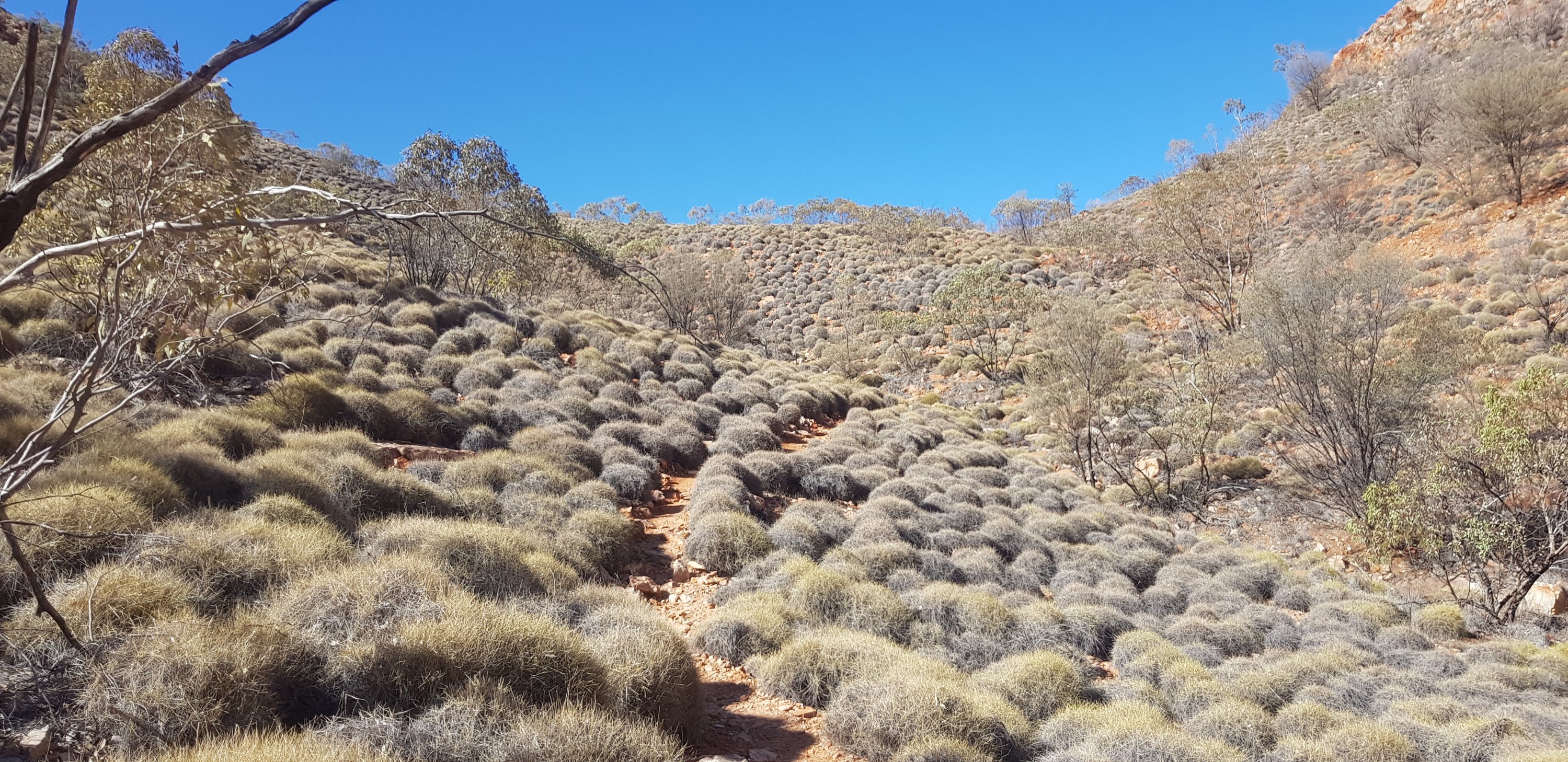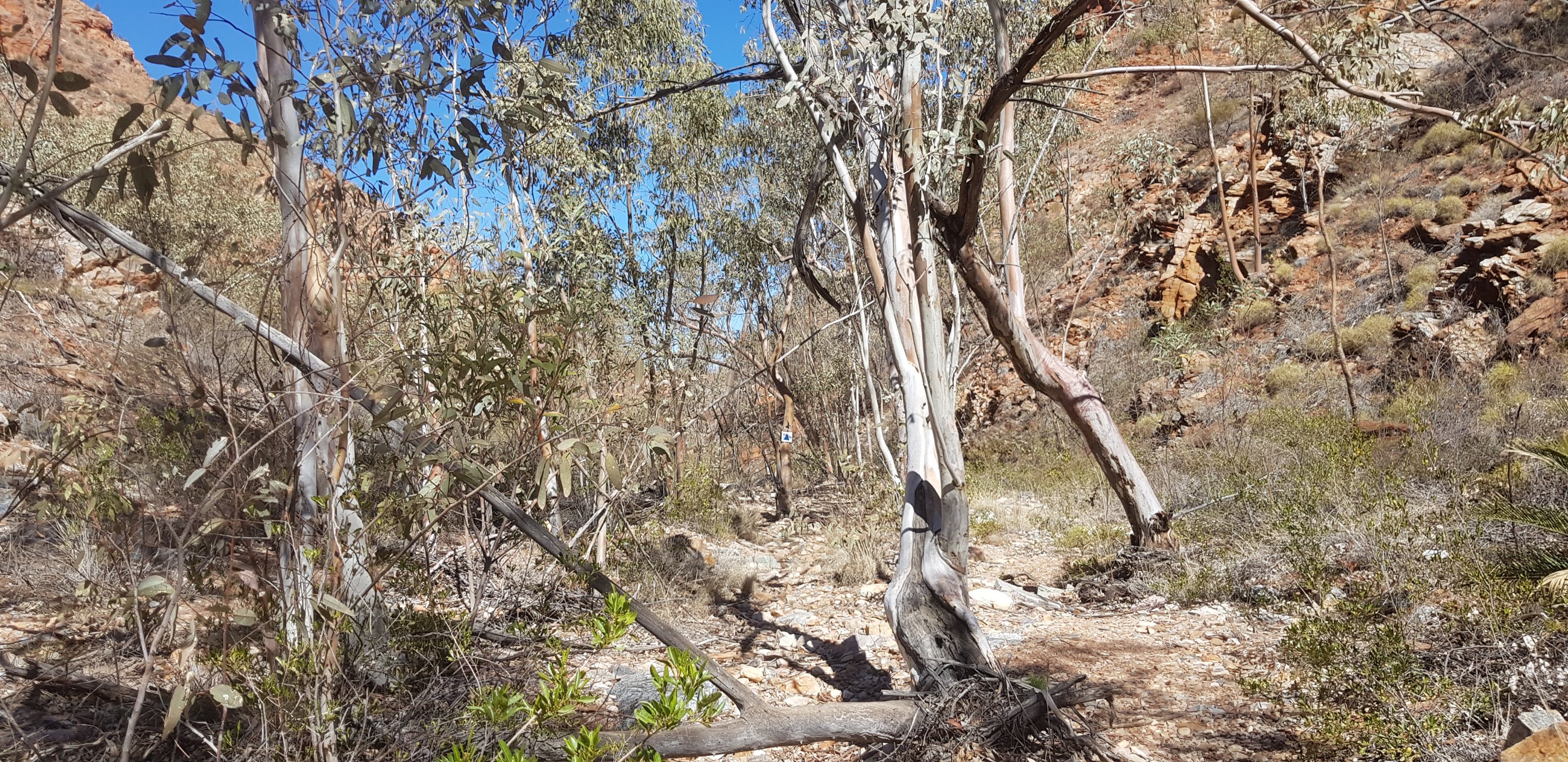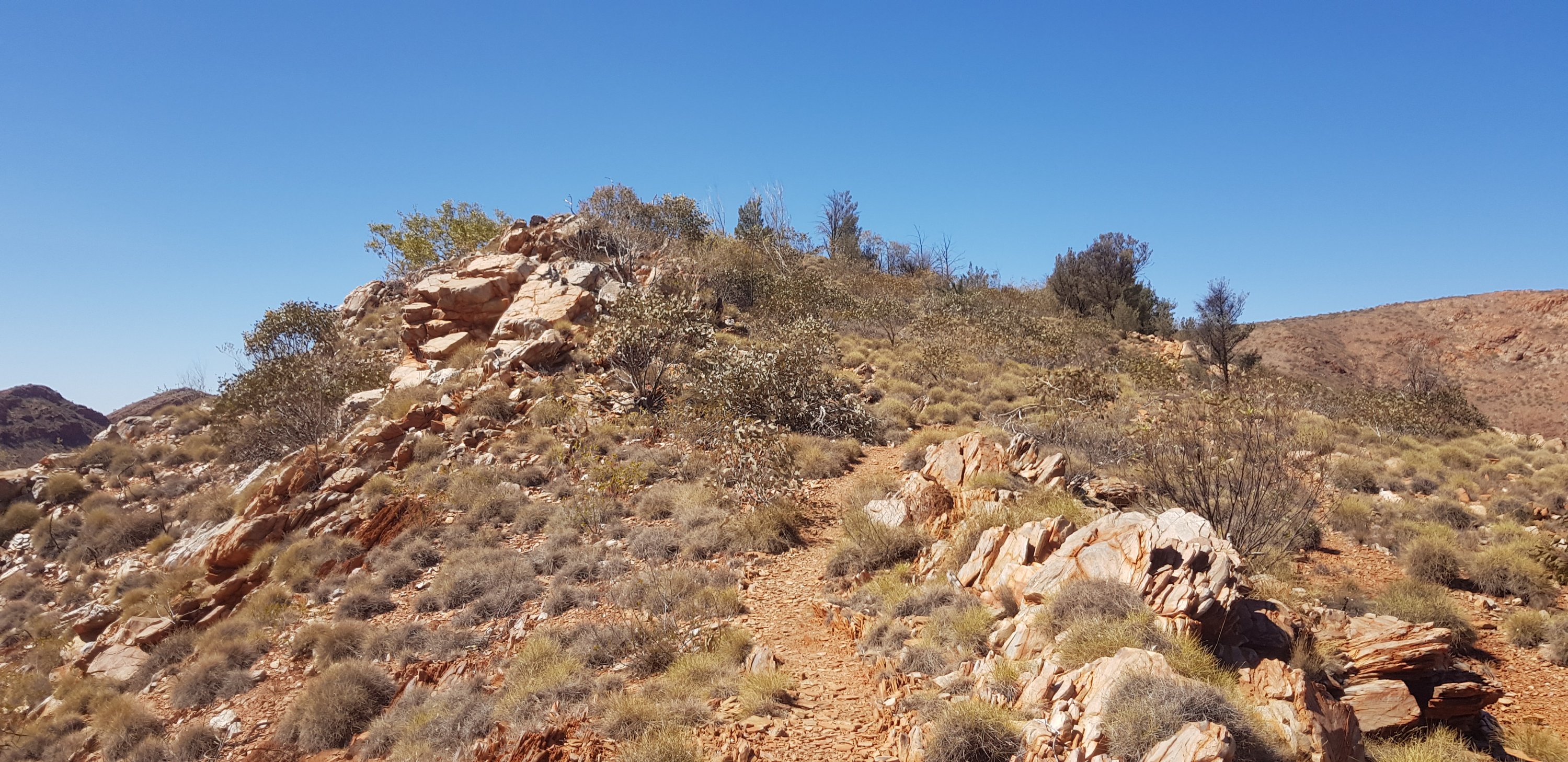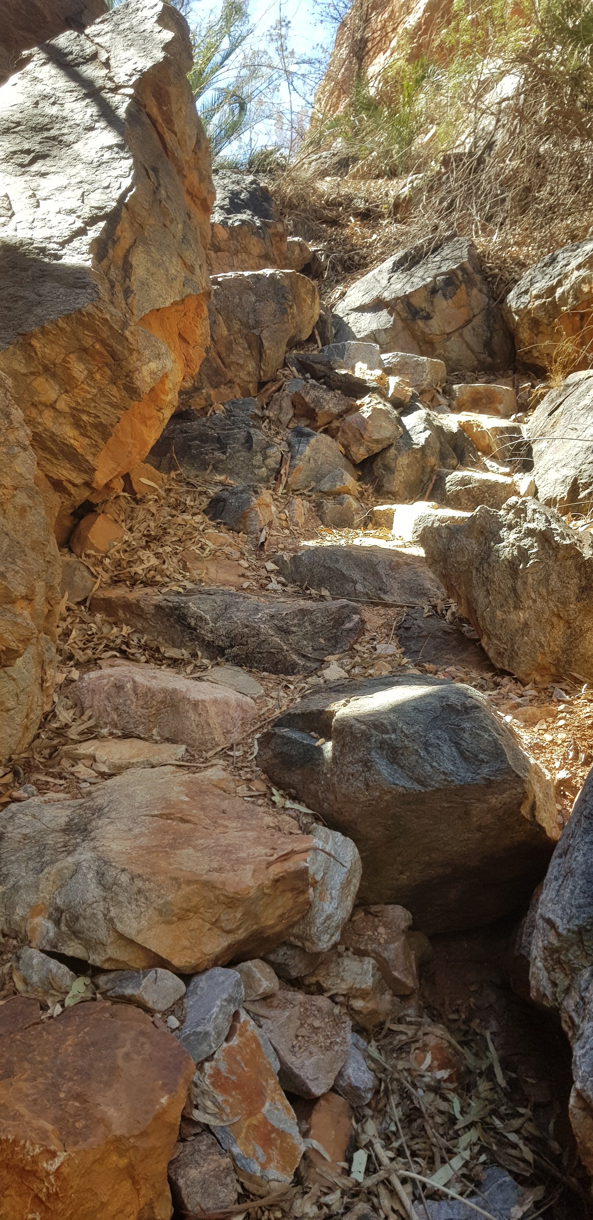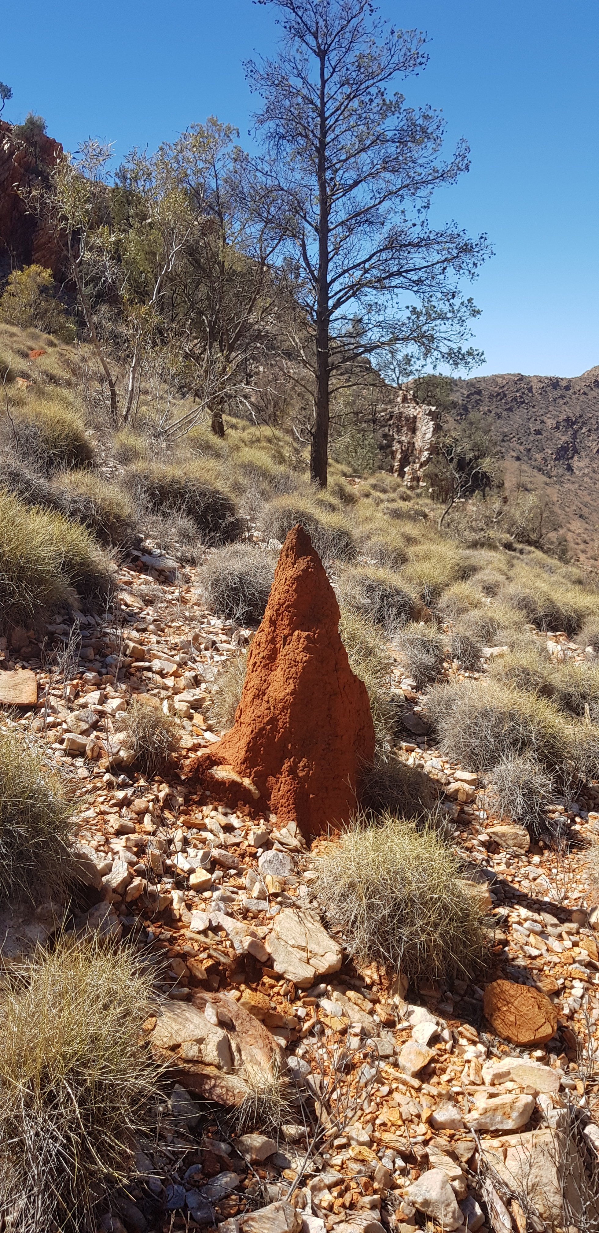 We left Alice Springs around 7am after a surprisingly delicious breakfast of avocado toast and mushrooms at the motel. It was half an hour back to the 4WD track and 50 minutes along a very rough track to get back to Hugh Gorge. We got back to the hikers camp and set off around 9am, with Jubbie coming along for the walk through the gorge. It was a never ending gorge and I felt like I might have spent the rest of my life walking through it! Jubble turned around at what would end up being about the half way mark. All up I think it went for 4kms and took an hour twenty. It was rocky underfoot but no scrambling required, just crossing from one side of the “creek” to the other to find the easiest path.