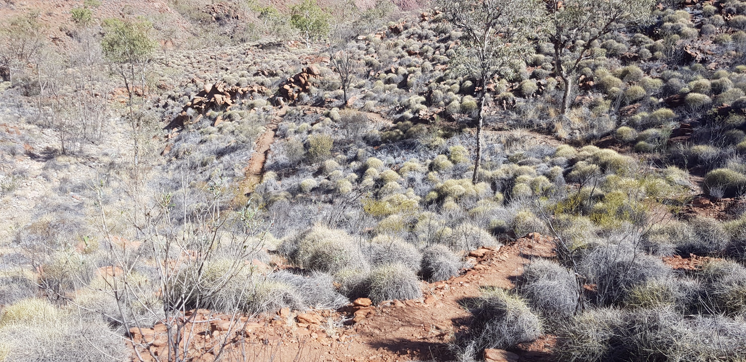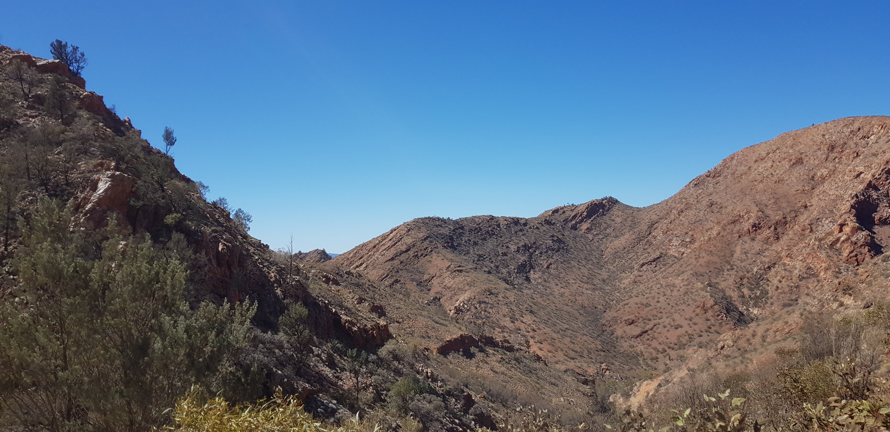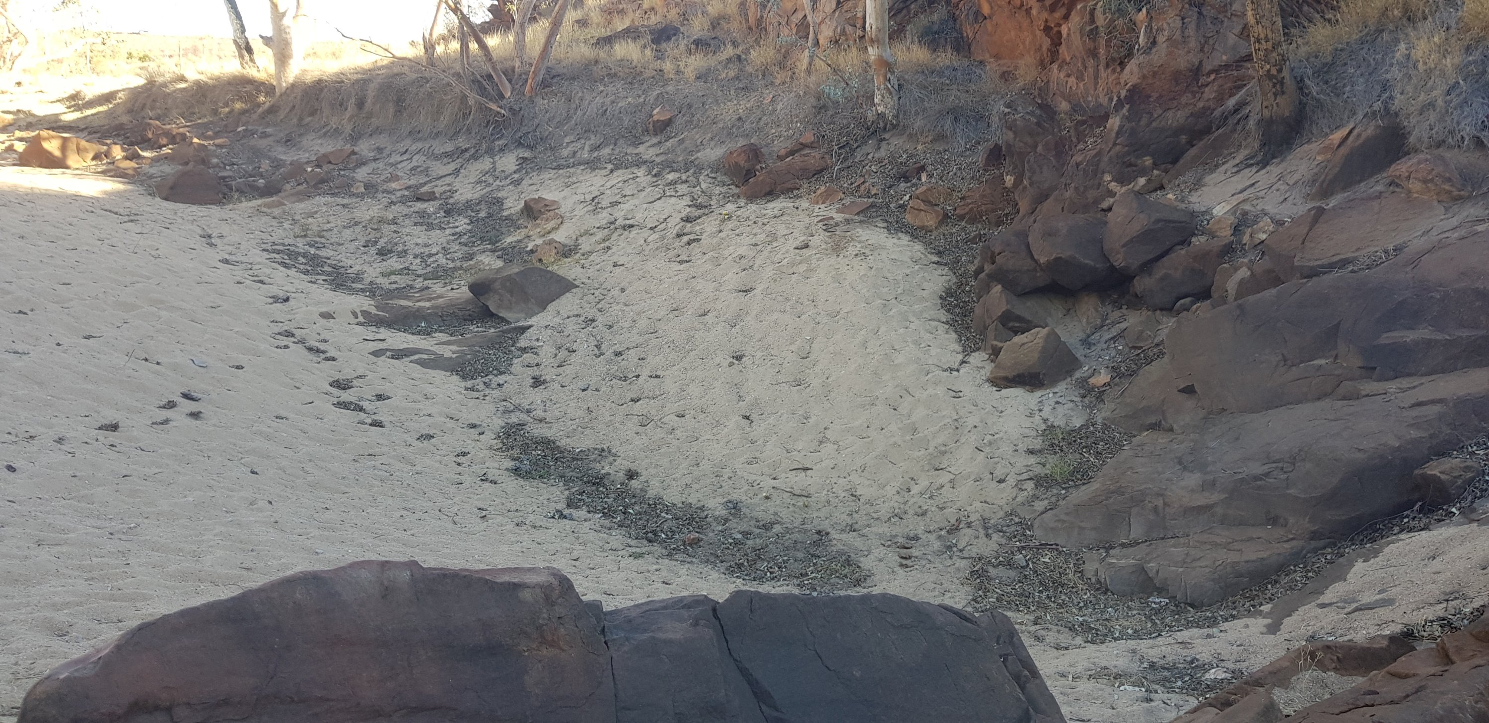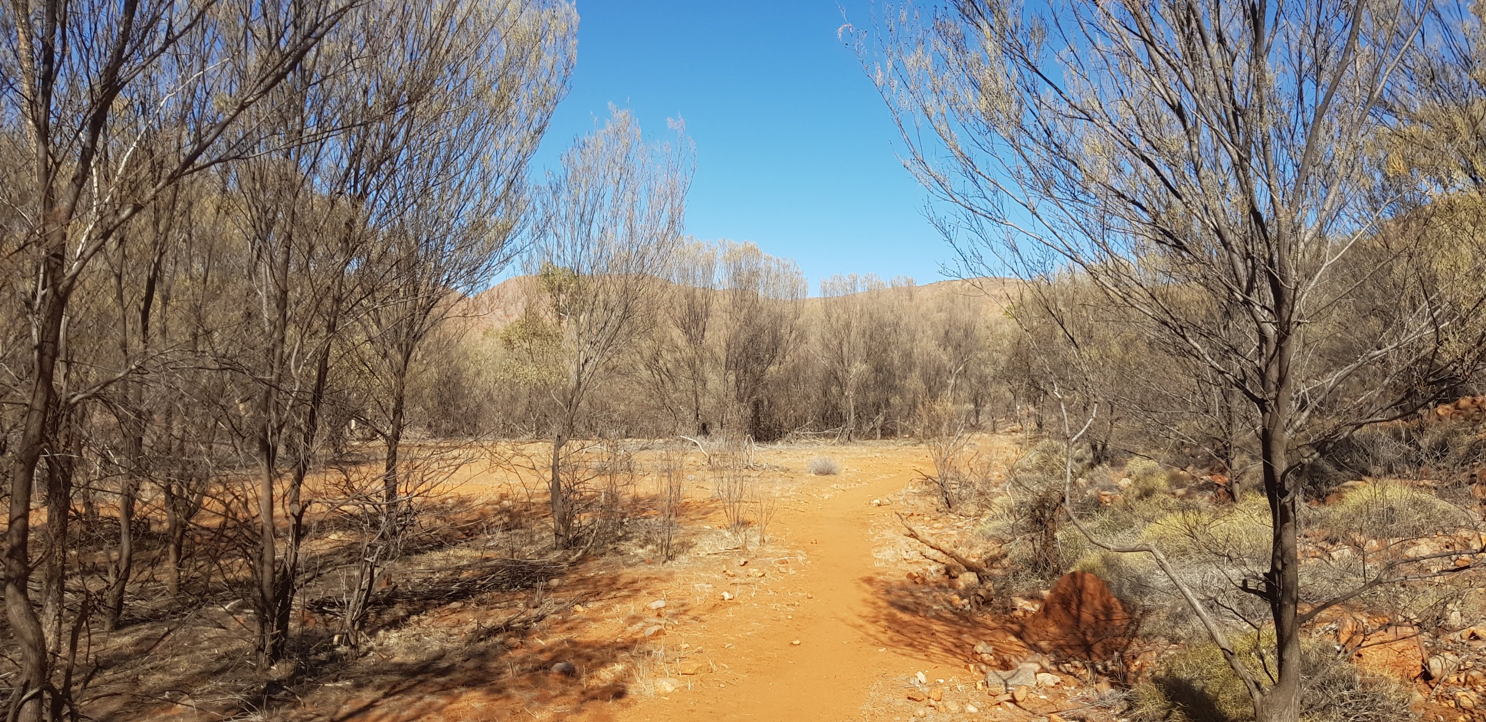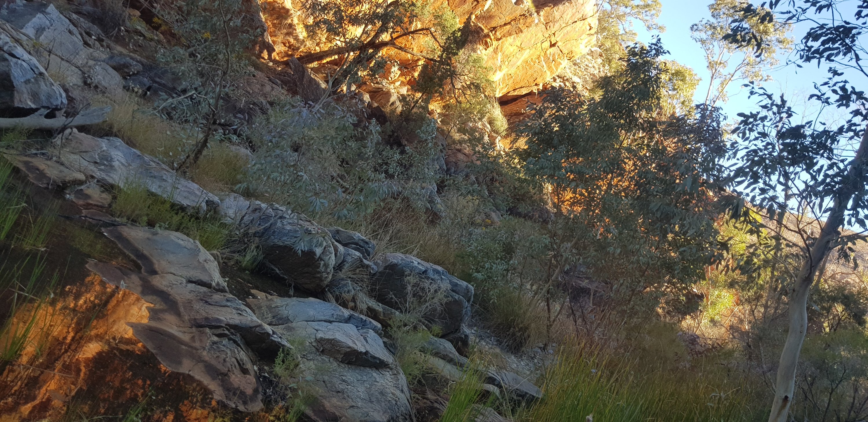 We left Alice Springs around 7am after a surprisingly delicious breakfast of avocado toast and mushrooms at the motel. It was half an hour back to the 4WD track and 50 minutes along a very rough track to get back to Hugh Gorge. We got back to the hikers camp and set off around 9am, with Jubbie coming along for the walk through the gorge. It was a never ending gorge and I felt like I might have spent the rest of my life walking through it! Jubble turned around at what would end up being about the half way mark. All up I think it went for 4kms and took an hour twenty. It was rocky underfoot but no scrambling required, just crossing from one side of the “creek” to the other to find the easiest path.