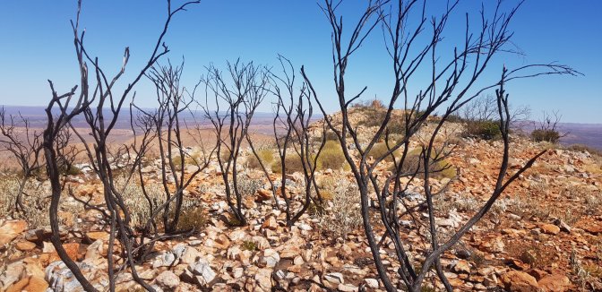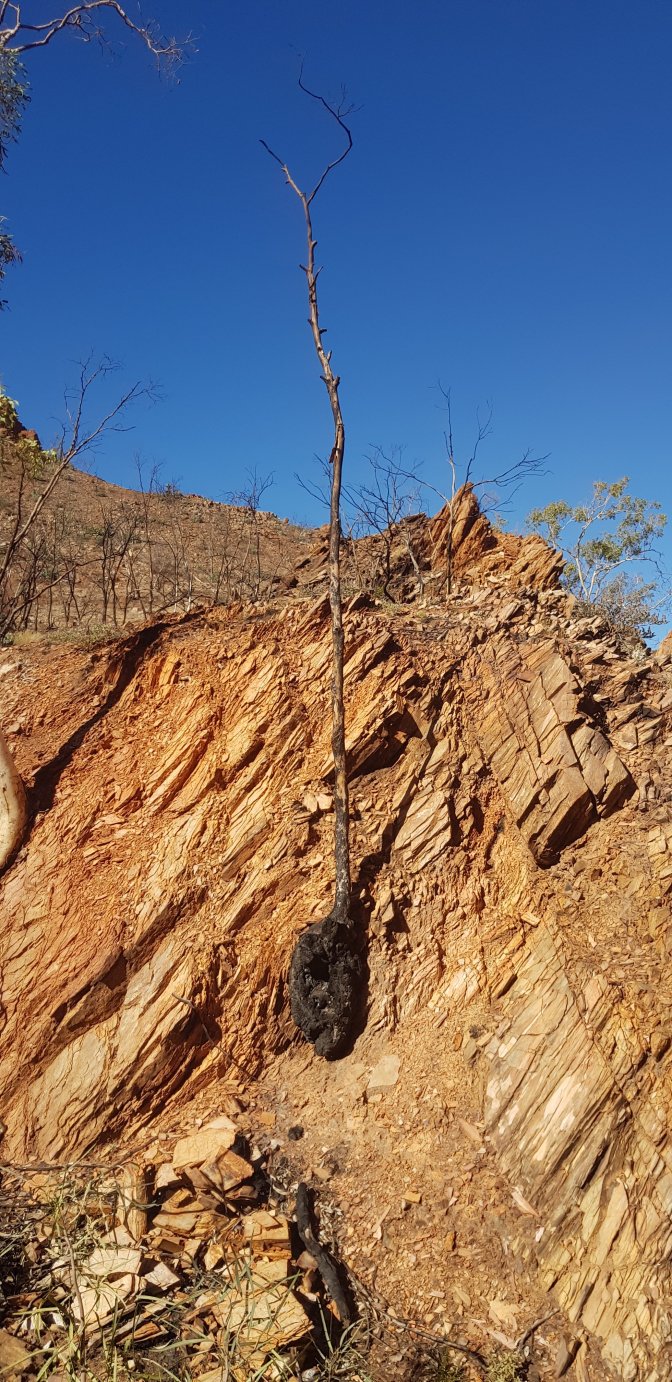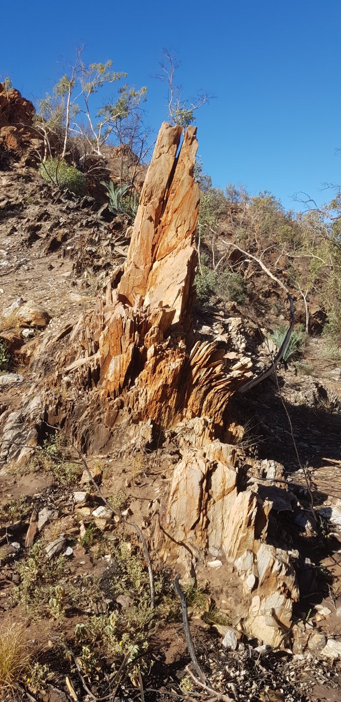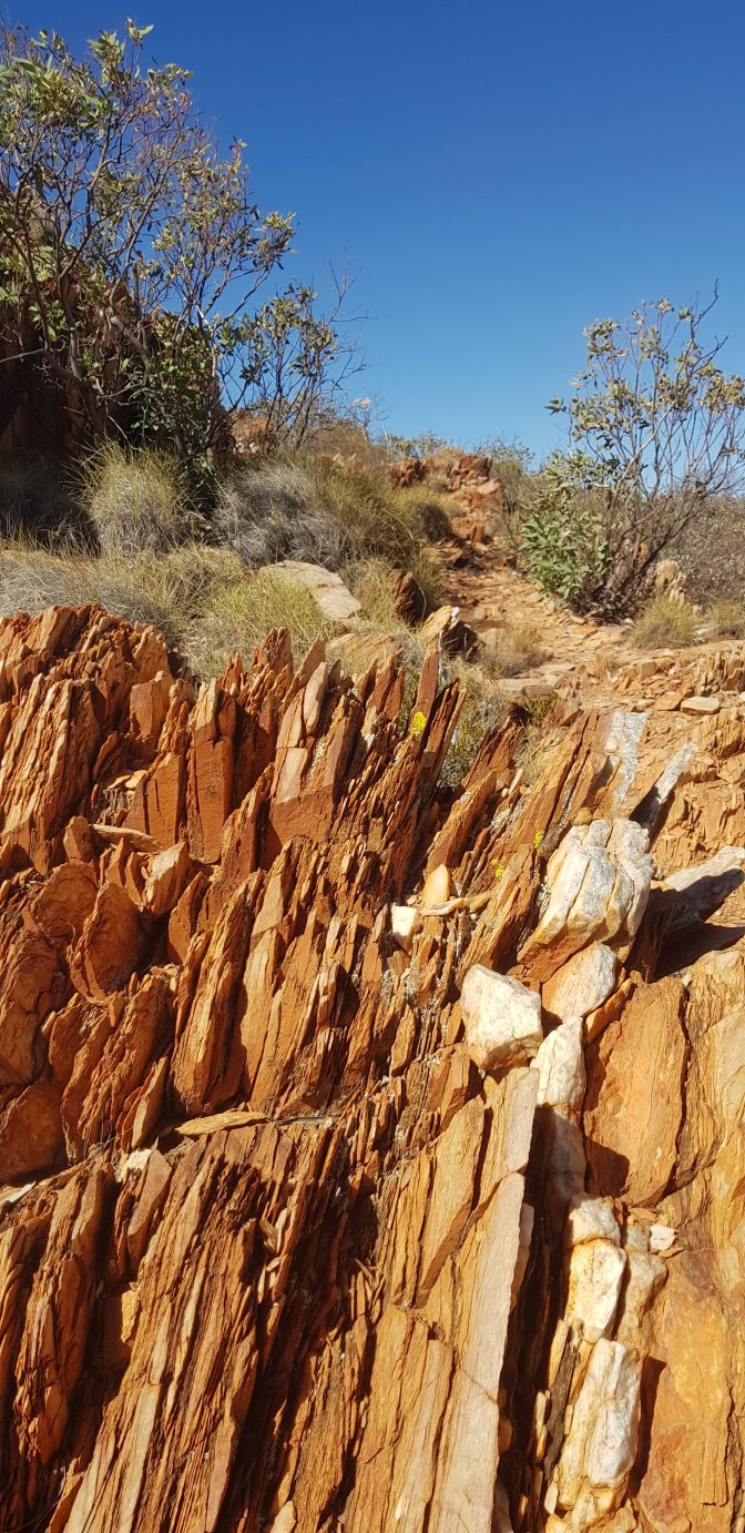 It was so lovely being able to see the stars last night. Equally, it was so lovely not waking up to see a dingo looking through the fly net. By the time I’d left Camp Jubbie and had a chat with Sim and Kyle at the hikers camp it was 9am. The first couple of kms were flat, dirt, lovely along a wide creek. So nice to just wander along with few rocks under foot. I met Walter along the way. He’d camped last night at Brinkley Bluff, apparently a very windy night. He recommended a couple of hikes including Carnarvon Gorge and the hike from Rainbow Beach through Sandy National Park. Across the creek the trail climbed quite steeply all the way up to a rocky saddle. It was pretty cool being able to look back through the valley I’d just walked along, all the way back to where our campsite would have been. Maybe if I’d squinted I could have seen our car still there.