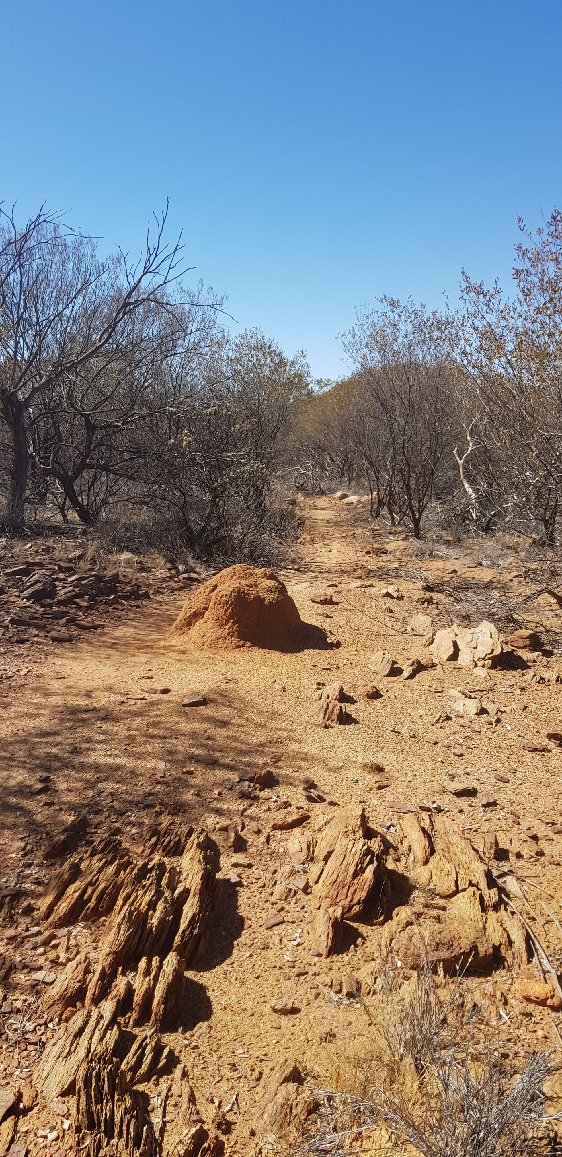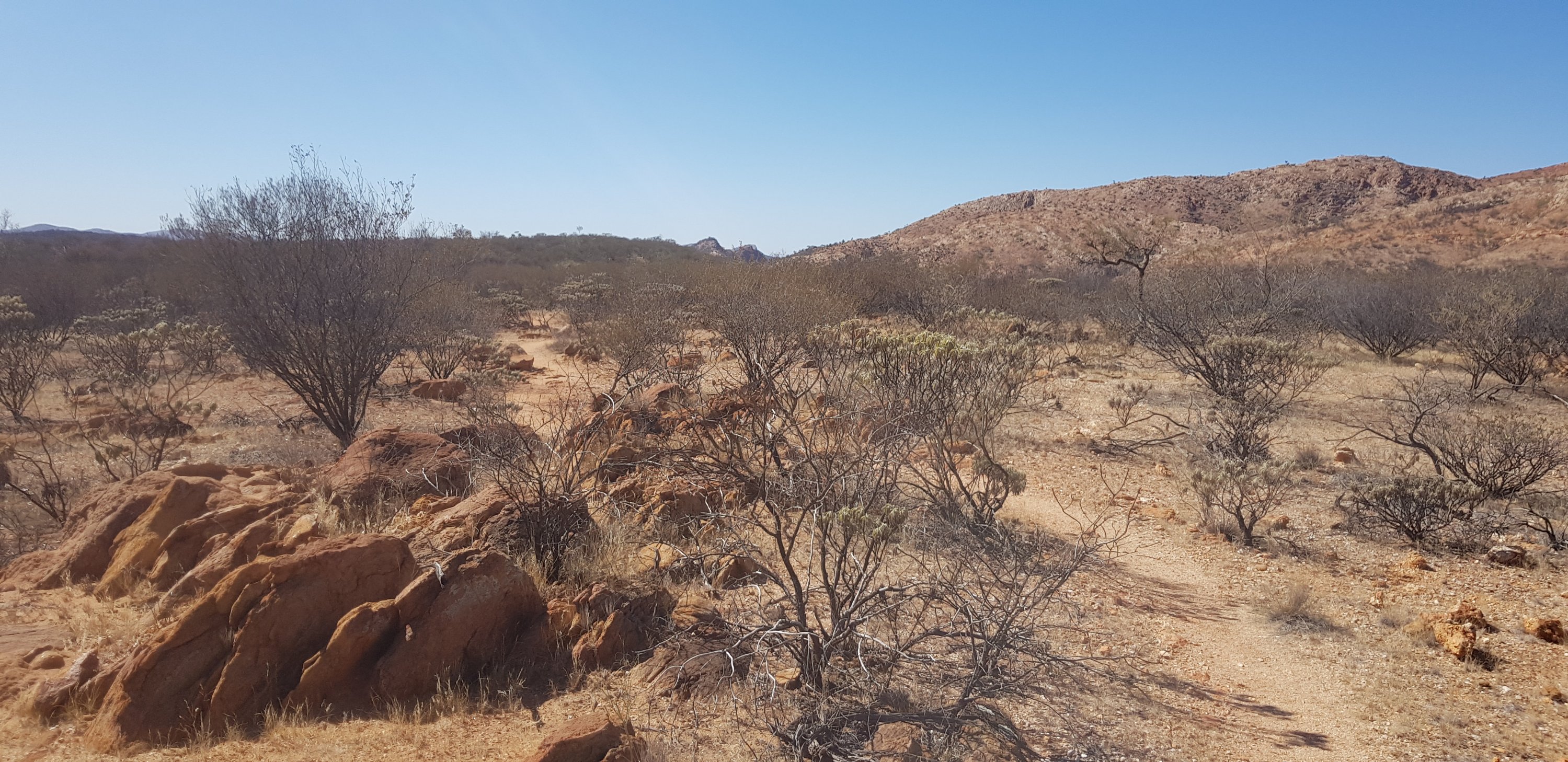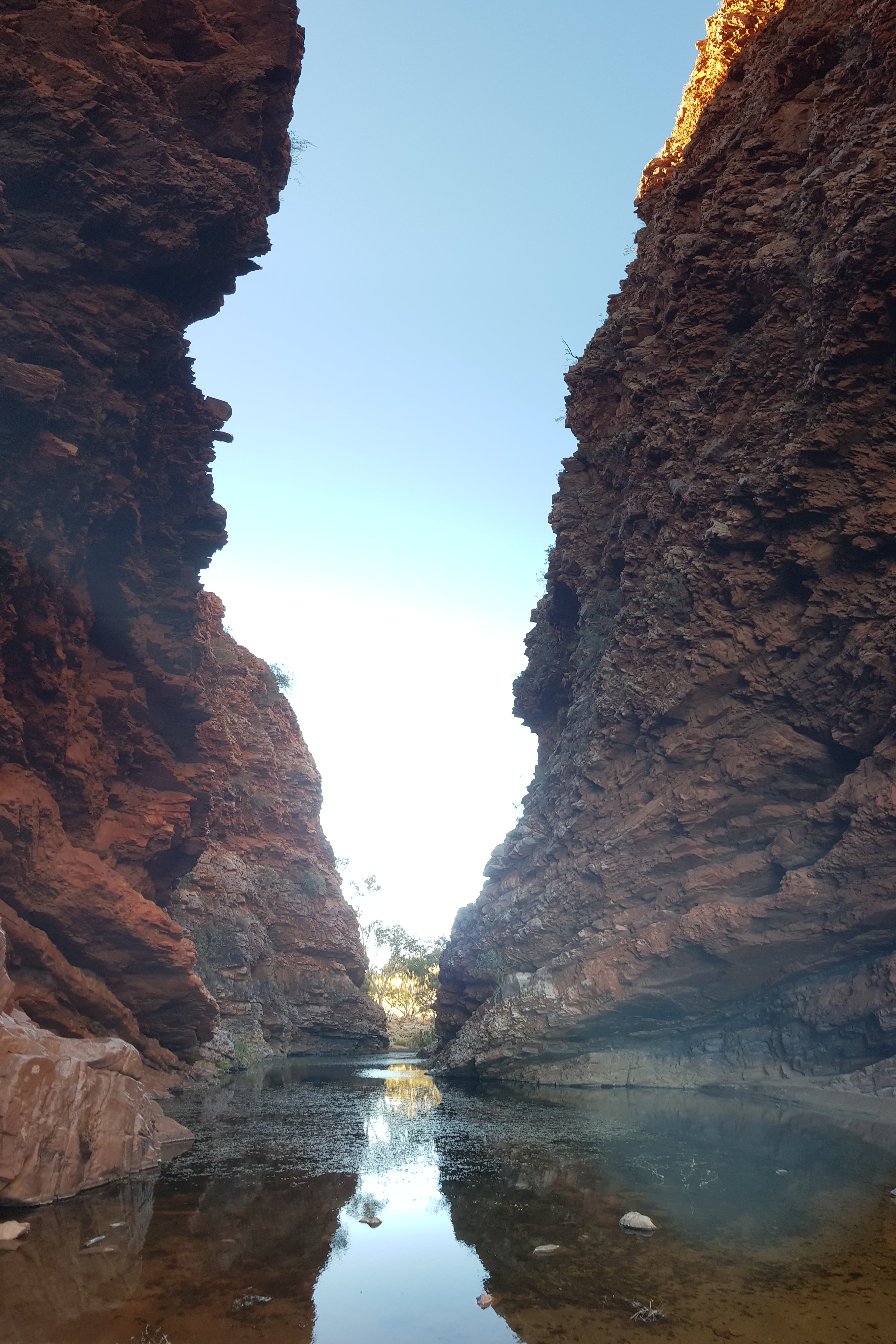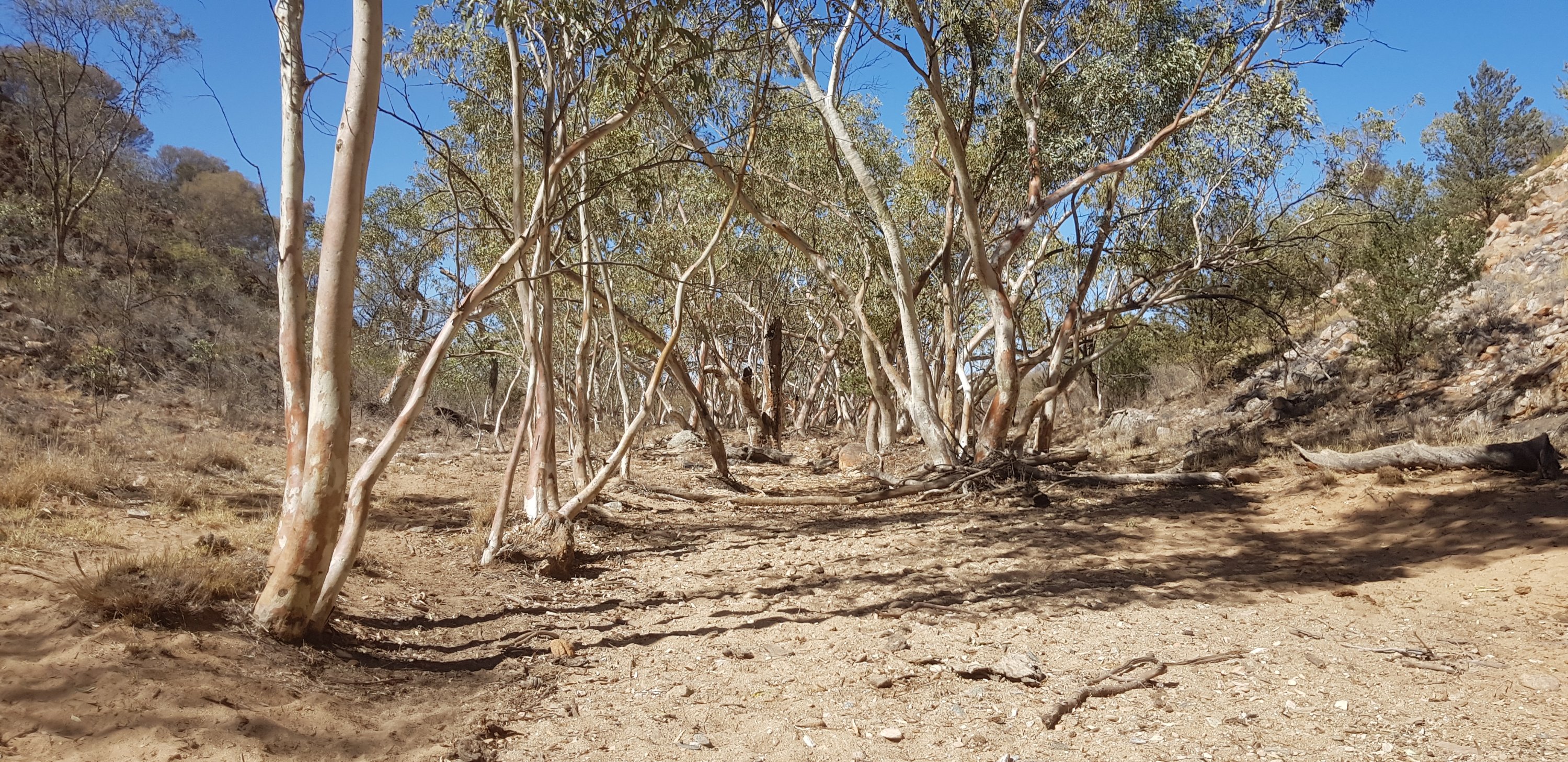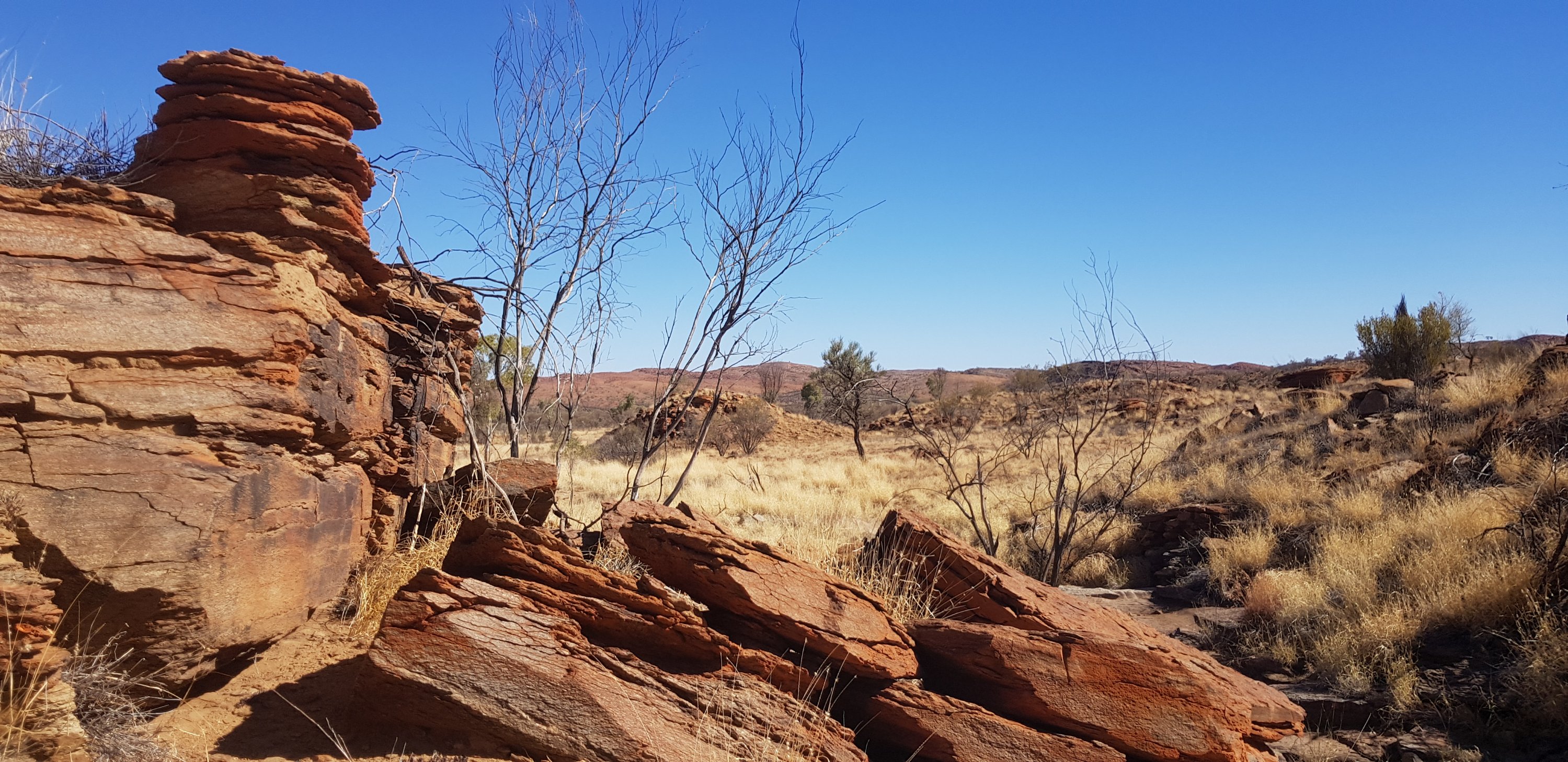 There were very few wild flowers and very little variation of terrain. In some areas there were more rocks and a little less grass, but that was about it. At the end of the day I caught up with Kate and Steve at the hikers camp. They both looked absolutely exhausted and had not enjoyed today. Kate especially found it long and boring. I can understand that even though I quite enjoyed it myself. I met Jubble and had a quick look at Simpsons Gap. It’s a permanent waterhole but clearly the water is low. In the gap there’s a rockslide down one of the sides where a colony of black footed rock wallabies lives. Jub was lucky enough to see one a bit earlier.