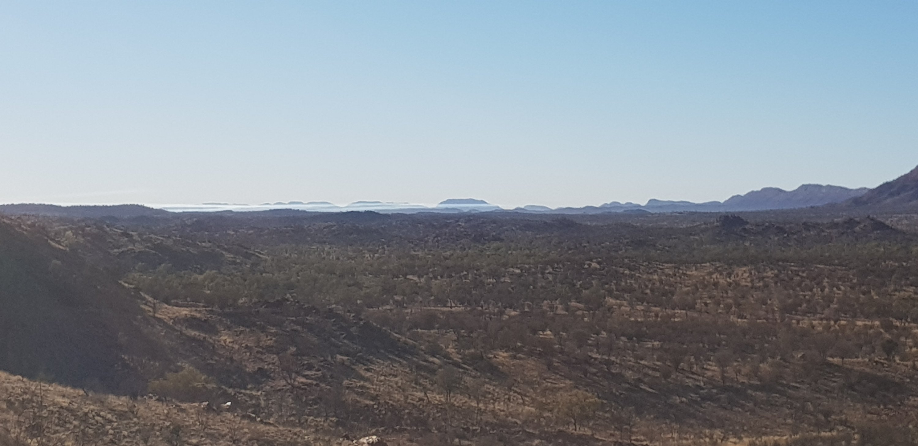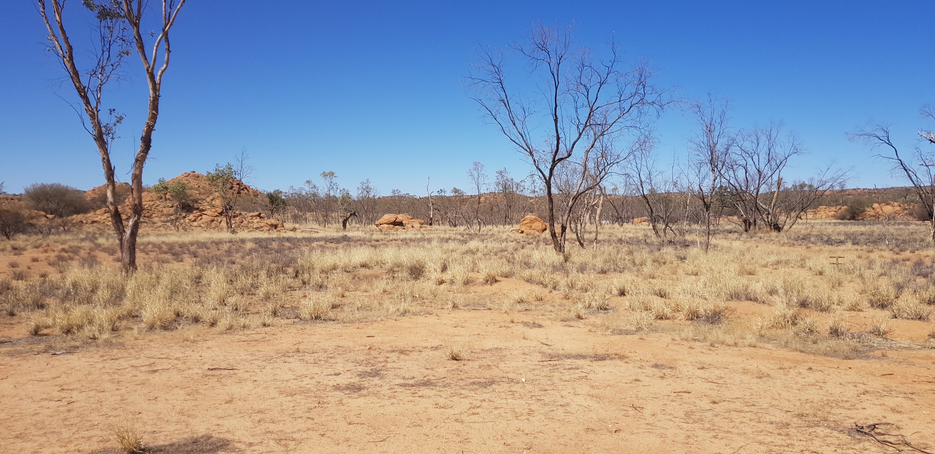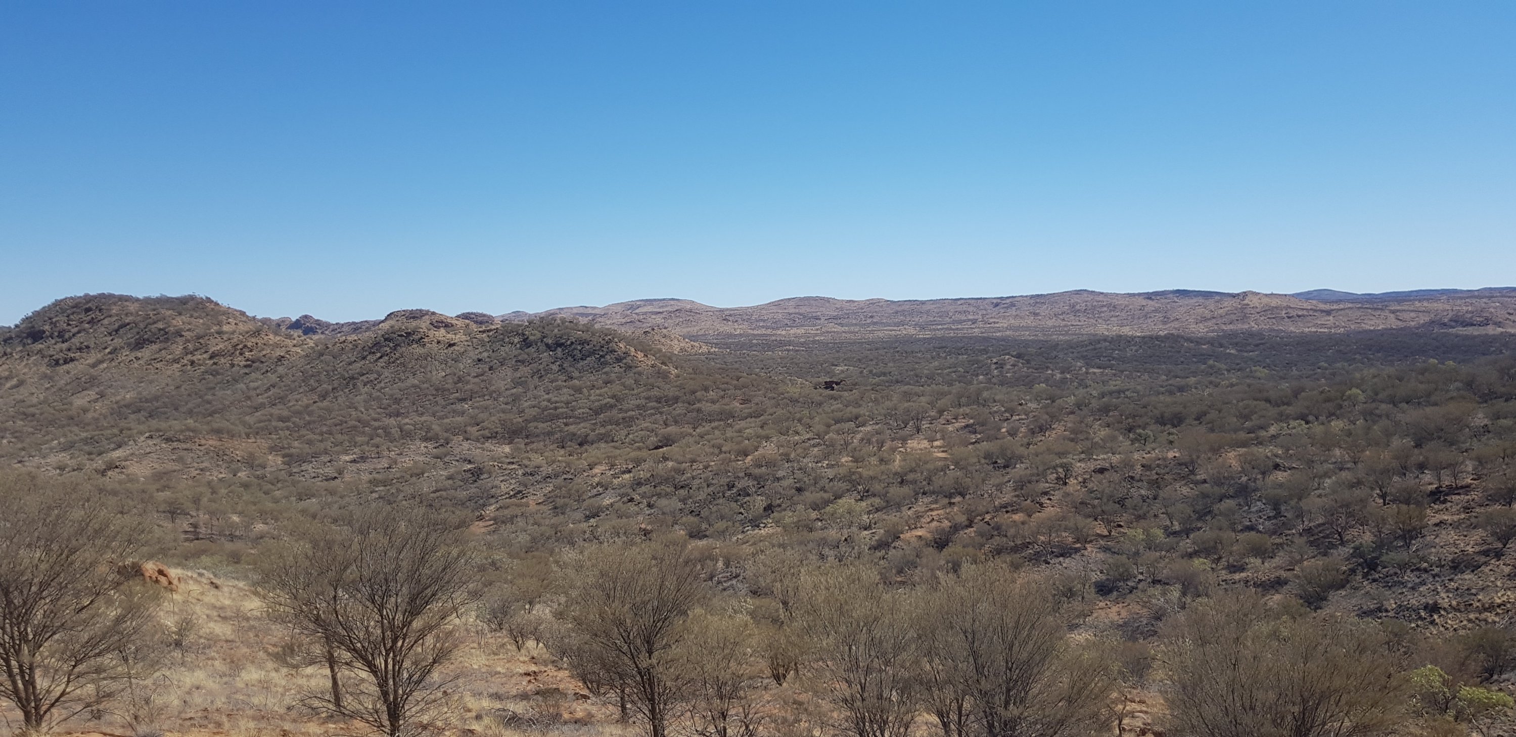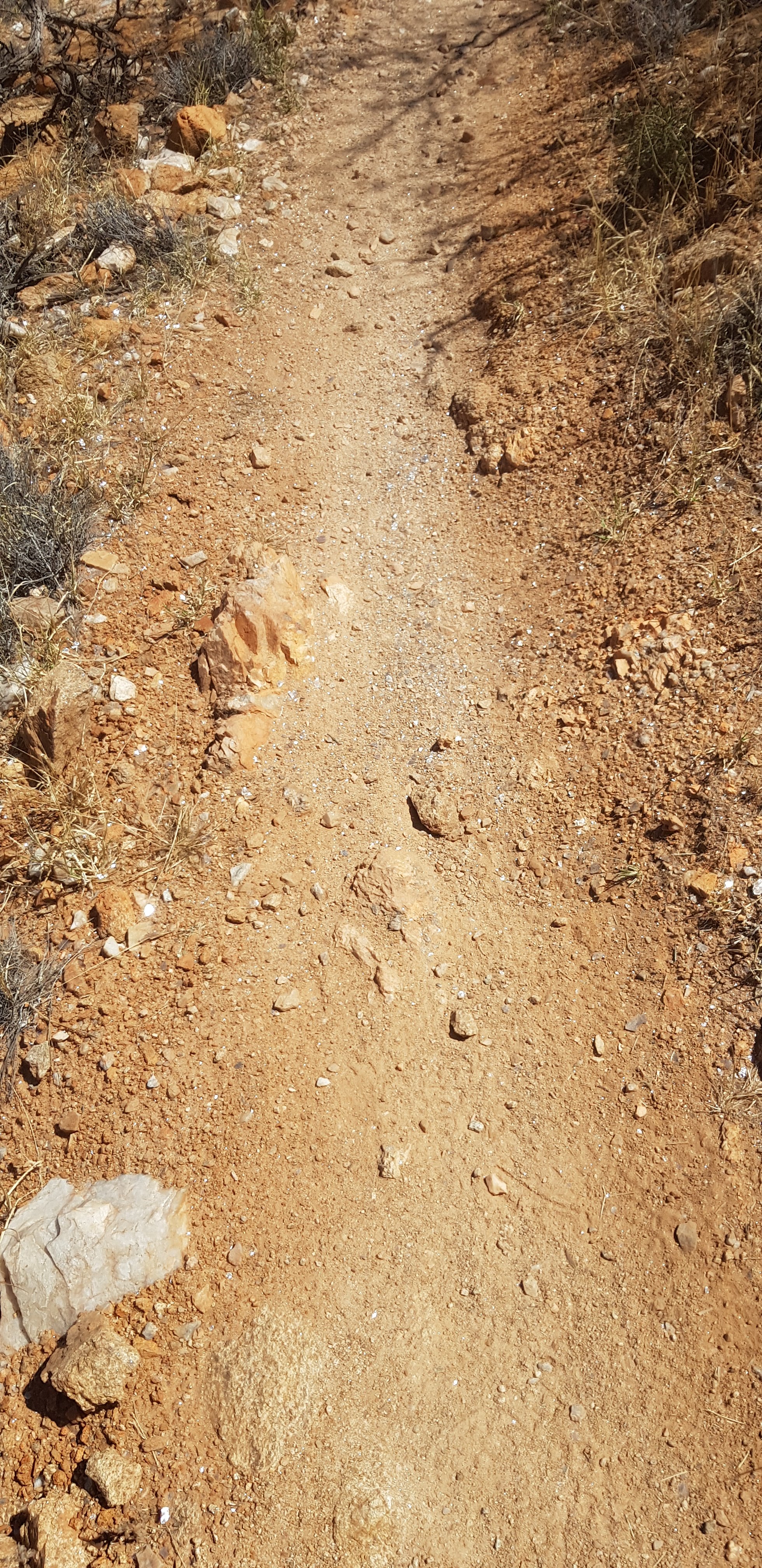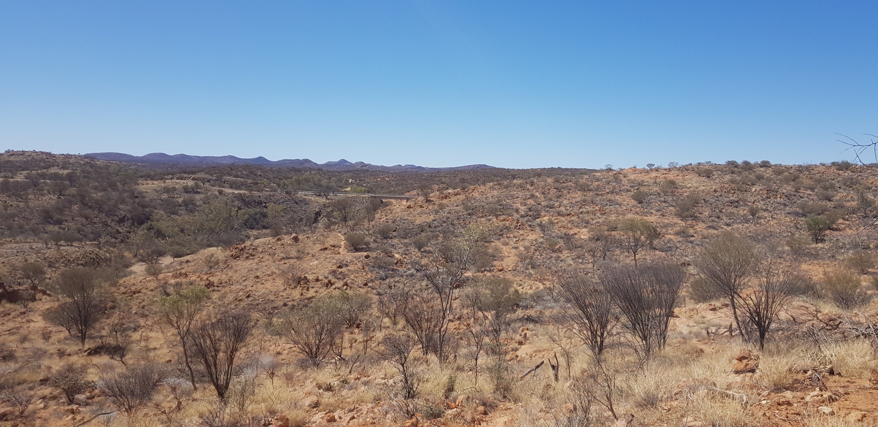 Today’s trail headed up the south slope of Hat Hill and skirted around it just below the junction of the slope and the vertical rock. I’d seen Hat Hill from a previous lookout without realising what it was and that I’d be circumnavigating it. From there the track was flat or slightly undulating hills to Wallaby Gap. Wallaby Gap was pretty unimpressive compared to the other gaps and waterholes I’ve seen.