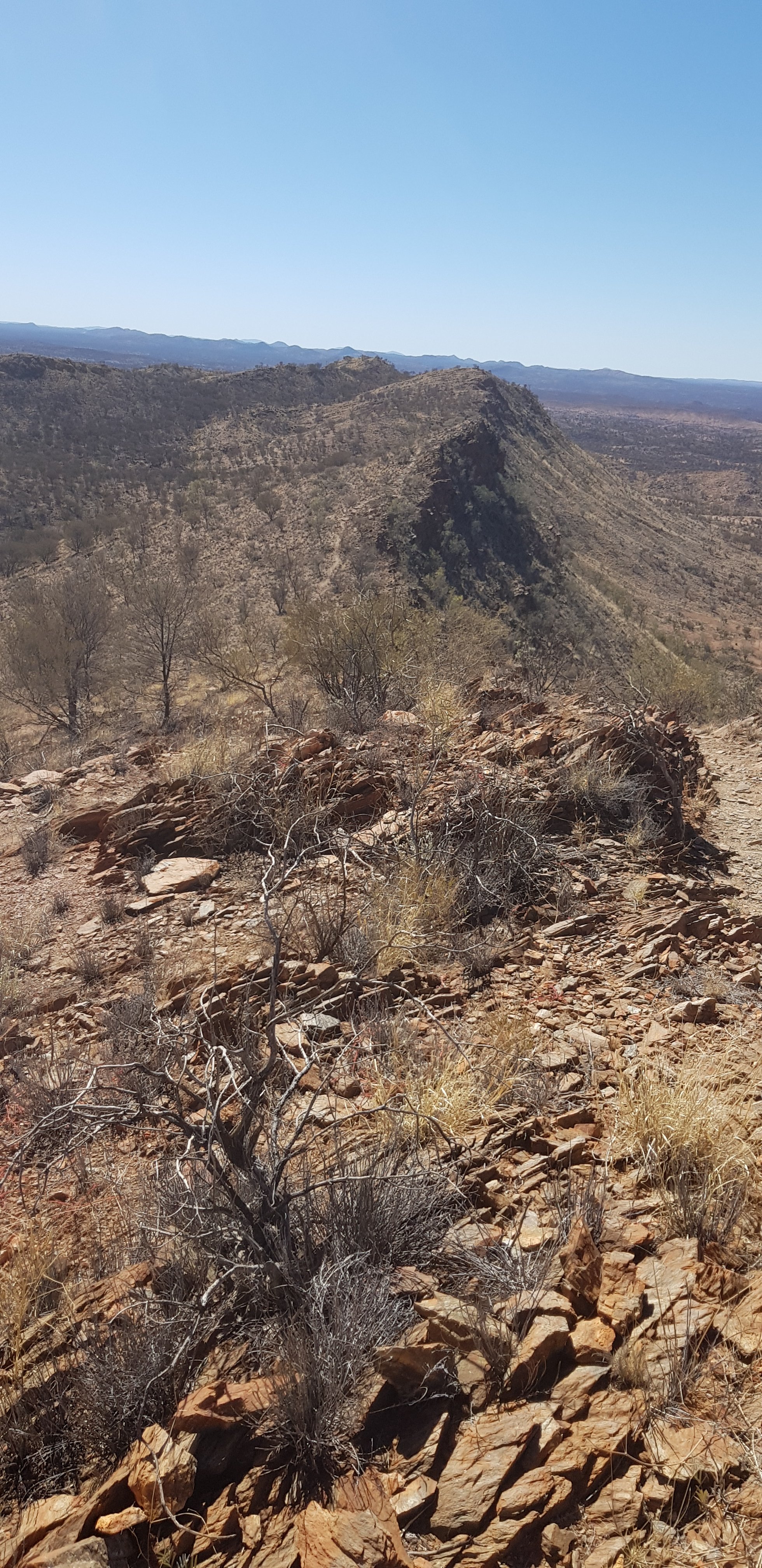 From Wallaby Gap, the trail quickly ascended to Euro Ridge, an 800m high ridge and lookout over Alice Springs in the distance and back over some of the mountains I’ve hiked over in preceding days. What a fantastic view! Even though it was nowhere near as high as the other mountains I’ve climbed, I really loved it. I imagine if you were travelling from Alice Springs to Mount Sonder, this would be a fantastic first high view.