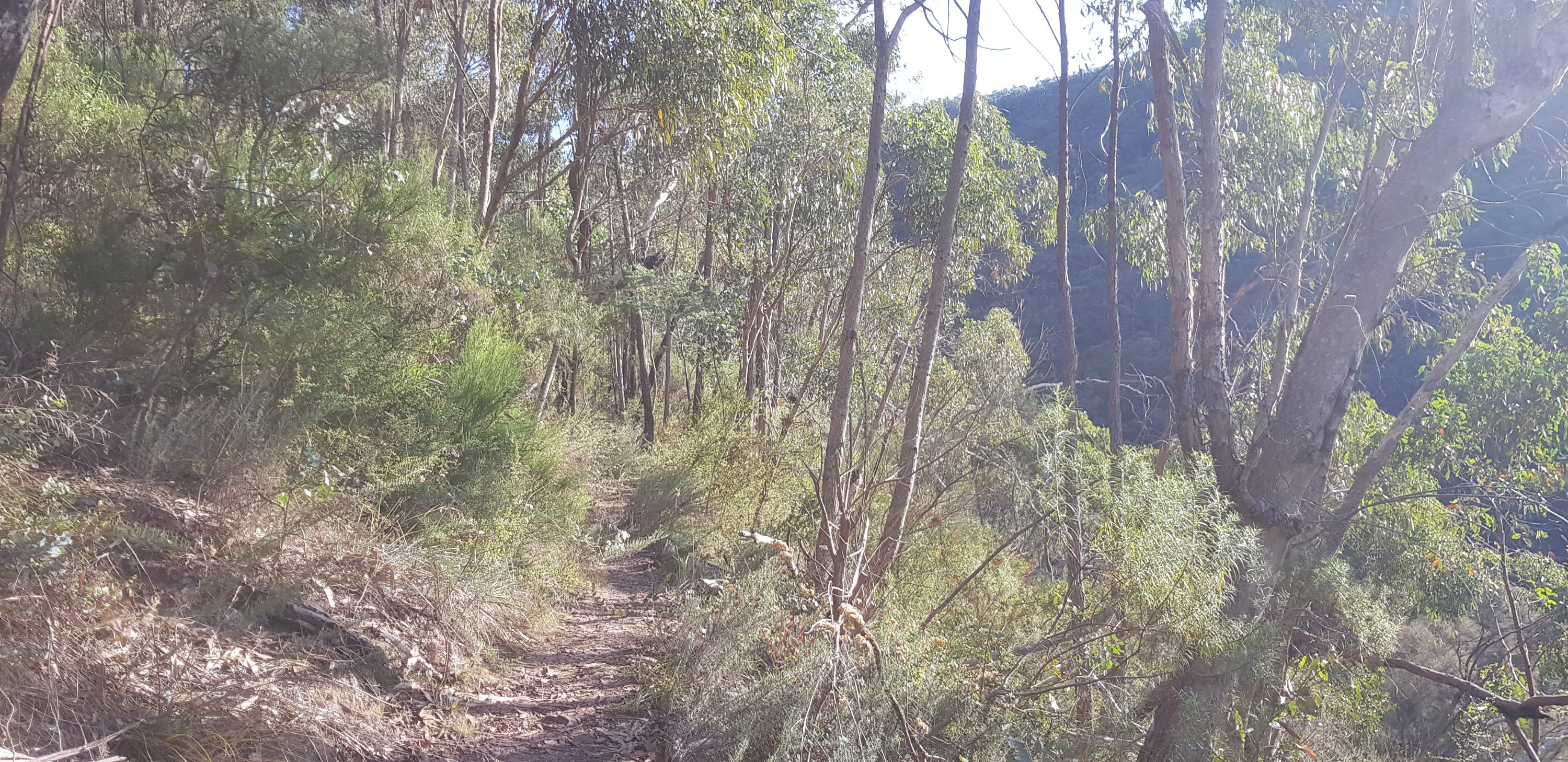 Last night we slept with all the windows open and just the fly screens closed so we could see the bush and the stars. So lovely. I’d fluffed up the doona so we were toasty warm. It was 9 degrees in the morning – much more civilised than 0 degrees yesterday! For Jubbie’s birthday I had squirreled away a couple of really nice bottles of wine and felt like a legend that he hadn’t discovered them before I gave them to him this morning. After breakie I headed off up a steep spur behind Melbourne Grammar School camp. This one had switchbacks all the way to the top so it was like walking up a steep path rather than climbing. At the top I met the dads and six kids all out bushwalking around the Crinoline Track. After a chat I headed off down the other side. There path was super well marked with lots of pink ribbons which I appreciated. I followed a steep spur down to Macalister River at the bottom. It was shallow with perfect pebbles and wasn’t flowing too quickly – the perfect river! After crossing some farmland, a dirt track zig zagged up to a saddle, then back down the other side. I could see some cows up the hill sitting in the shade. I was thinking how lovely they were when one stood up and was watching me. Then the others stood up and they started walking down, then running. Much less lovely. I was hoping I could get to the gate before they got to me! Until I realised they were on the other side of a fence…