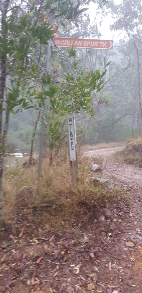 As usual we were up at 6 and I headed off around 7:30 after savoury oats and tea. It started raining during the night and pretty much didn’t stop for the whole day. I spent the first 2 hours 15 minutes climbing 4.6kms up a steep 4WD track that was slippery and muddy from the rain. At one point I had so much mud on my shoes they were noticeably heavier! Often I had to really concentrate to not slip down the hill. Five cars passed me heading up and they must have been wondering what I was doing. I was too. Jubbie had a great idea to take an umbrella and that made it way more pleasant than it otherwise would have been. I kept myself plodding up the hill by counting my steps til the next flat section. Each time I got to that little flat section, I’d look up and see a whole lot more hill ahead. Tough walk. But what was a pleasant surprise was that the hill finished at 4.6kms – I’d expected it to end at 5.4kms, so that almost 1km of flat track was an absolute welcome bonus! Just after I came out on the main road Jubble drove along so we stopped for tea and coffee and a Jubbie bar.