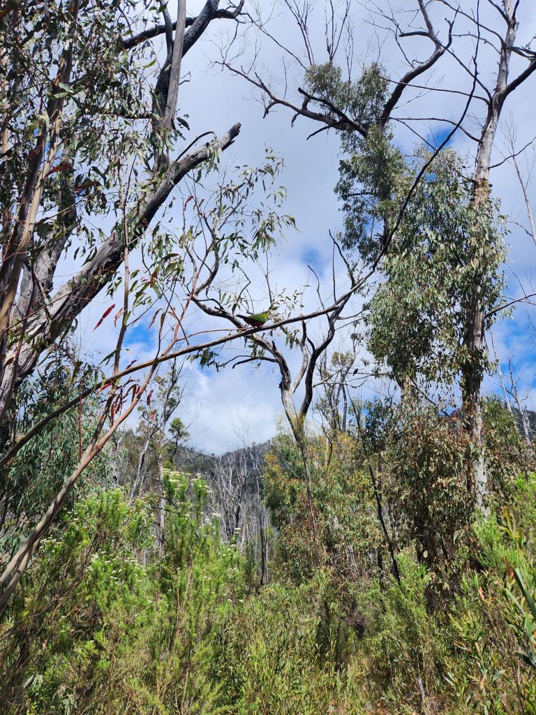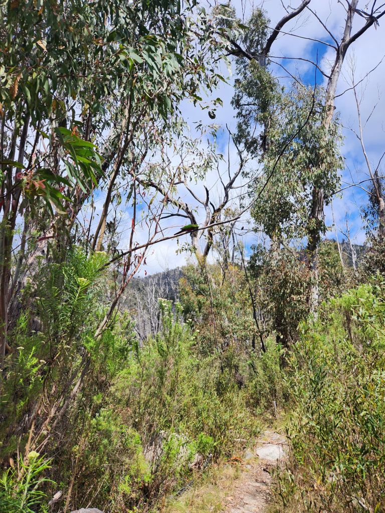 I set off from Namadgi Visitors Centre just after 8:30am under a beautifully overcast sky. I certainly hadn’t forgotten the climb up Mt Tennant as the start the AAWT! It’s a really lovely, painstakingly built trail up the side of the mountain and there is ongoing work laying ever more rocks. The view from Cypress Pine Lookout is stunning – I’m sure I saw Jubble down there somewhere drinking coffee.