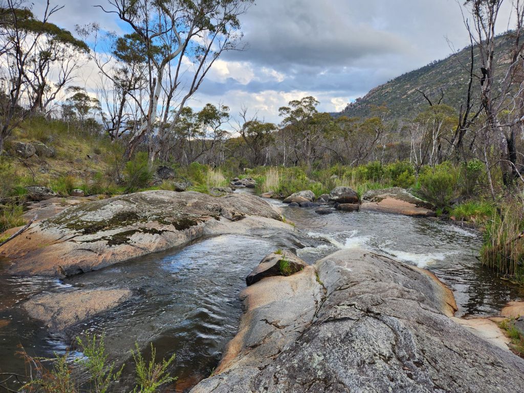 Along a gentle trail between Booroomba Rocks and Honeysuckle Creek Campground I came across two groups of two people out for a day walk which took the day’s total people seen to seven. Walking along this trail, I bent down to take a photo and felt my back spasm. It’s been a bit tricky for a couple of weeks and I thought it was almost good before we left home. Obviously not. I walked pretty gingerly to Honeysuckle Creek Campground where I did some stretching and worked out I think I’m ok walking and it doesn’t seem to make it worse. I just need to be careful lifting my pack and moving from standing to sitting and vice versa.