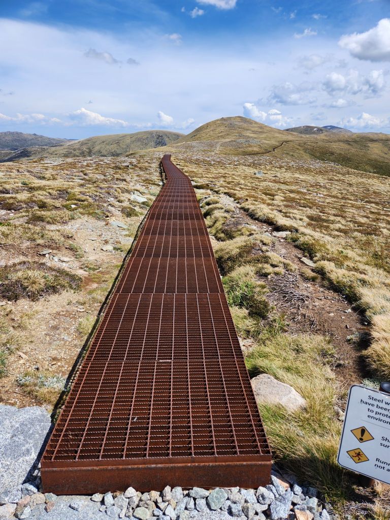 When I got to the Main Range Walking Track, I was sure I could make it to Dead Horse Gap tonight and therefore to a shower and bed! The challenge and benefit of the Main Range Walking Track is that it’s mostly made of stones or metal walking track, both of which are hard under foot, especially for feet that have just crossed the Rolling Ground and climbed several mountains, but there is no navigation required and you can just walk at a good pace. By now, I know what it feels like to keep going with sore feet and achy backpack shoulders, and I can push on.
