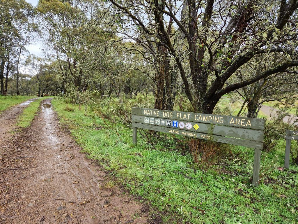 Just before leaving Cowombat Flat, I cooked my noodles for lunch under a brolly in the rain. I had a surprising number of flies with me despite the rain. After lunch, i had a quick look at the plane wreakage before heading off again. There was just under 10kms of uphill, some of it the toiling kind. It continued to rain, sometimes a spit, sometimes harder. I finally got to the part of the track with a locked gate and Jubble on the other side. After a quick powerade and ditching my backpack in the car, I finished the last 3kms sans pack, which felt amazing! Jubble picked me up at tomorrow’s starting point and drove me to Native Dog Campground. We’ve stayed here before and it’s really lovely. We had the place to ourselves with the wallabies. Surprisingly, no brumbies (Jubbie had them here last night). It was so nice to get out of my wet clothes, have delicious Singapore noodles for dinner, and hop into our nest. We lay in bed with light rain and softly rumbling thunder, warm and toasty.