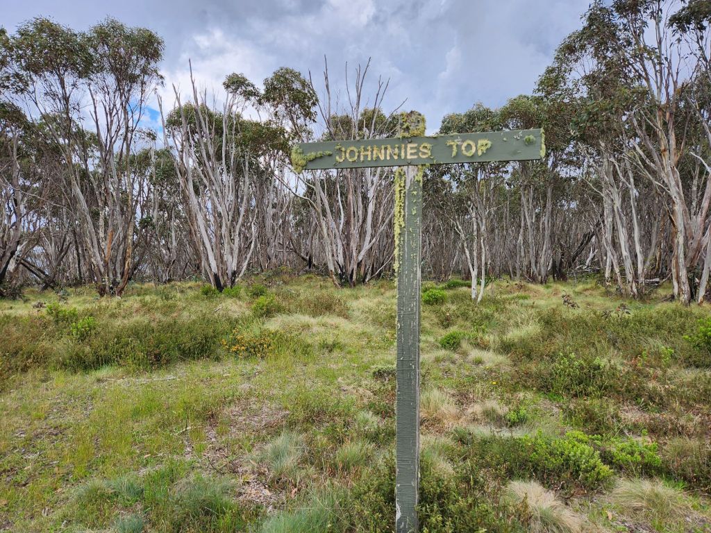 At the top, I sat down to have some hydralite and a peanut butter wrap. I love that my legs haven’t been sore at all after big climbs and that I’m happy to just keep going. Soon after leaving the top, I met a hiker doing Mt Hotham to Canberra, and he was struggling. His day had been predominantly uphill with some of those being very steep (I was about to experience them downhill), and he’d just picked up a food drop so his pack was extra heavy. He wanted to make it down to the flats but thought he’d have to stop at Johnnie’s Top because of the storm. It had been thundering all morning, but so far, no rain, and the weather forecast on my Inreach said only 60% chance of small amounts of rain. I wonder what he ended up doing.