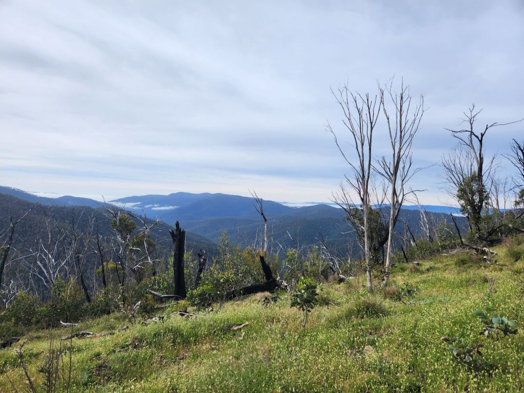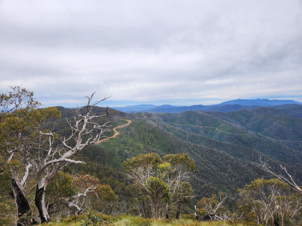 Today was supposed to be short at 14kms. East Riley Road is the last road Jubbie can get to before the next section where I’ll be out for three or four days, so that was our meeting spot. We had a bit of a sleep in, and I left just after 8am. The day started 200m straight up a 4WD track, the kind that seem to keep going and going. Jack had left an hour before me and had walked off into the mist. That was all gone when I left. My big mountain for the day was Mt Selwyn, which I really enjoyed climbing. It seems to have been spared in the 2019/20 bushfires, so there was plenty of vegetation, the path was easy to follow, and you couldn’t see the summit as you were climbing. There were several false summits, and there was some ridge walking before the top. After Mt Selwyn came South Selwyn, which was a stroll up a gentle hill.