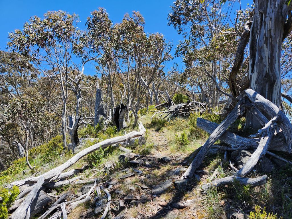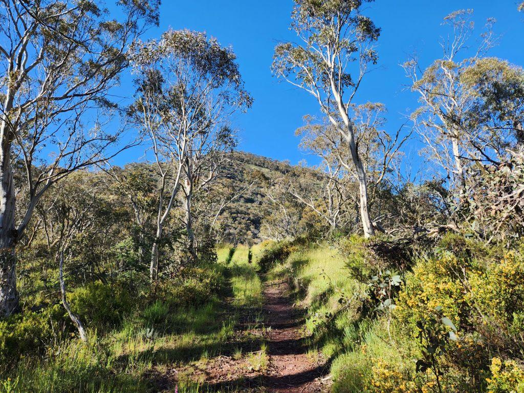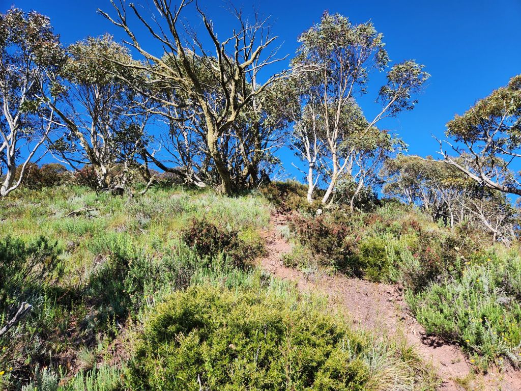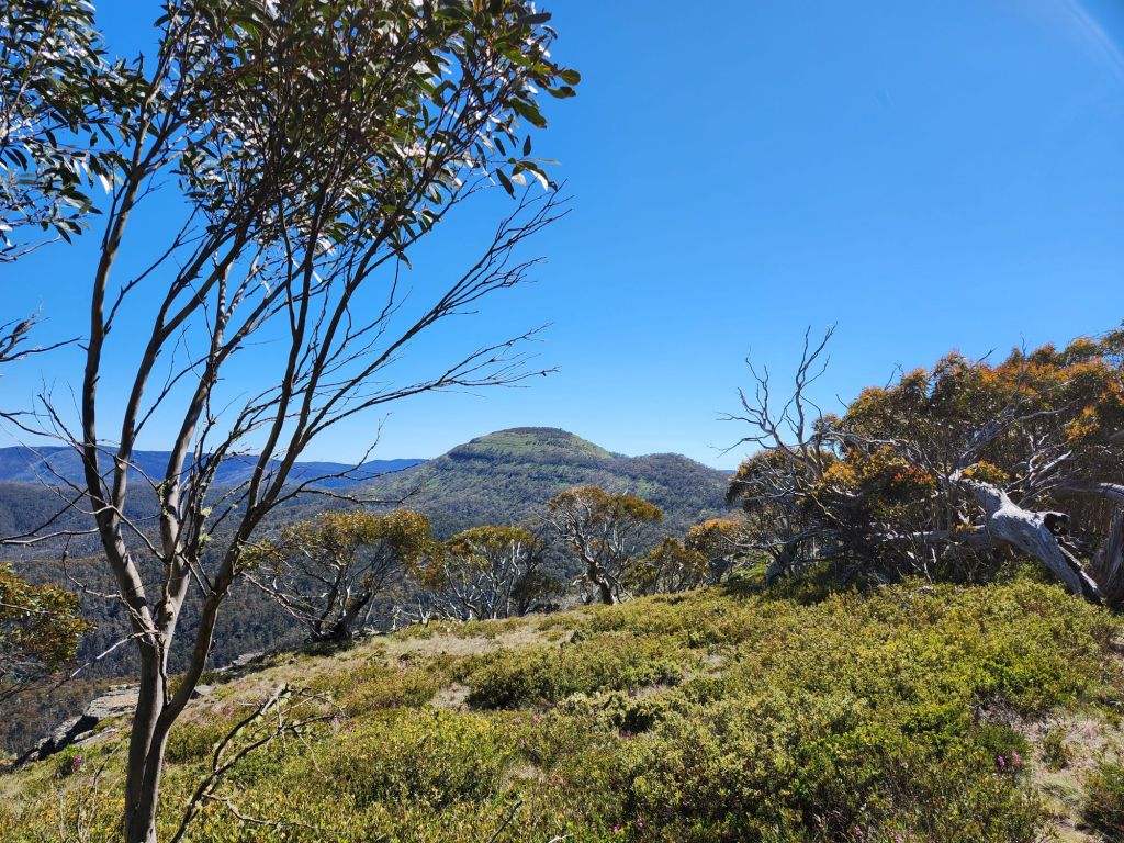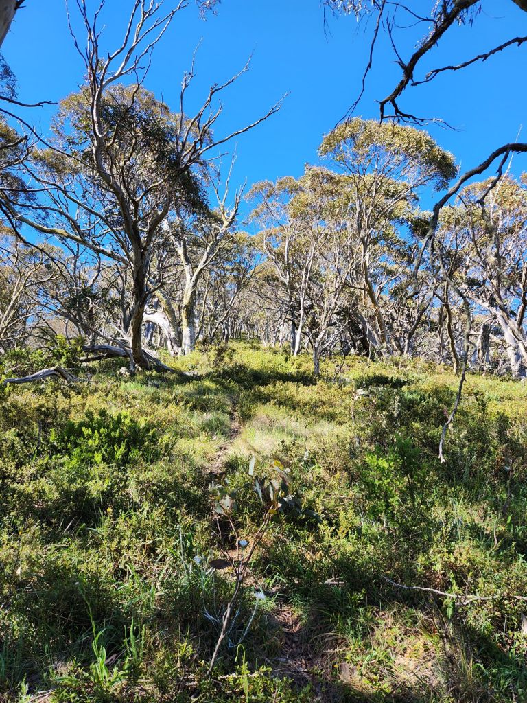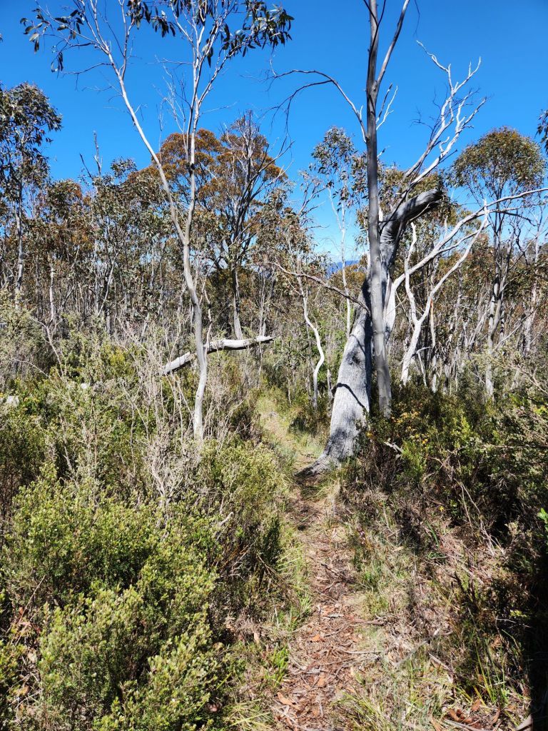 I tried really hard to get to Low Saddle and Jubbie today, but I just couldn’t make it. But that’s the end of the day… After not getting much sleep, I was off at 7am. The management trail continued to near the base of Mt Clear. Well, that was a steep mountain! The first 80% was super steep and hard work, but then it came to this gorgeous section of snow gums and a gentle stroll towards the summit. After Mt Clear came Square Top where I lost the track near the summit and spent time bush bashing to find it again. Once I had it again, I was definitely not letting it go. The regrowth was out of control, and there were loads of trees down. Better to stick with the track! Coming down off Square Top, i met a guy who was very wary about Mt McDonald and me making my way down there late in the day. He said the track was hard to follow, and it was very steep. That’s when I started getting nervous I wasn’t going to make it to Jubble, and I knew I wasn’t carrying enough water to camp if I did have a go and didn’t make it down Mt McDonald.