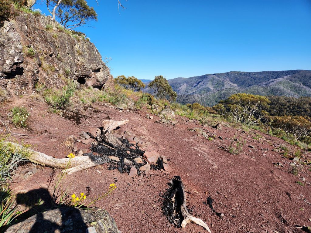 After Square Top came High Cone, then The Nobbs. My legs were tired today, maybe because of the big day of climbing yesterday. I was confused by my map coming off High Cone and went the wrong way down a 4wd track for maybe 500m, so had to go back up the track again to work out the right path! When I reached Nobbs Track, a 4wd track, I was really concerned I wasn’t going to make Low Saddle in the daylight I had left. I had just enough water to get me there and just enough daylight and mobile charge if everything went perfectly and I didn’t lose the track, but no contingency. So I made the call to camp for the night. I found a spot to camp right near the start of the trail to Mt McDonald, then walked about 1km down the 4wd track to find water. Lucky it’s rained so much lately, and I didn’t have to walk further to find it. I found a little stream of water running along the side of the road, and at one point, there was just enough of an angle to fill my bottle. Then I slogged back up the track to the campsite. It was lovely getting in relatively early, setting my tent up so it could dry out, taking my shoes off, and just chilling. Unfortunately, there are ants everywhere, and the flies, including March flies, were relentless. So I lay in my tent for a while until one of the baffles on my air mattress broke, so one side is normal, and the other is all puffed up. This will be an interesting sleep tonight! Jack arrived awhile later, and after a chat, he continued up the path to find a flatter campsite. I had dinner, sorted everything out, and was in bed before 7pm. As soon as the sun went off my solar charger, there was no point staying up any longer. My battery pack is flat, so fingers crossed I have enough battery to get me to Low Saddle tomorrow!