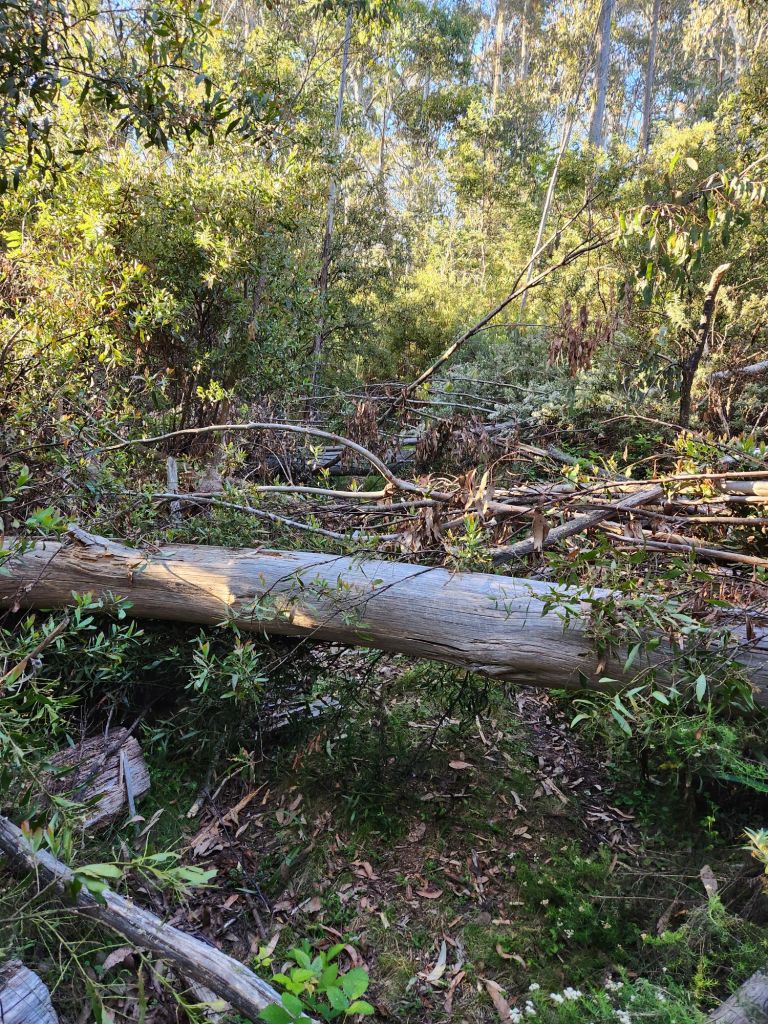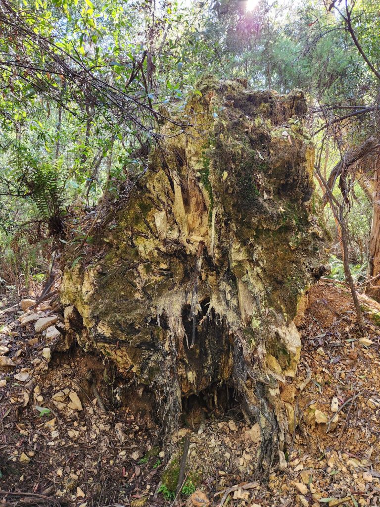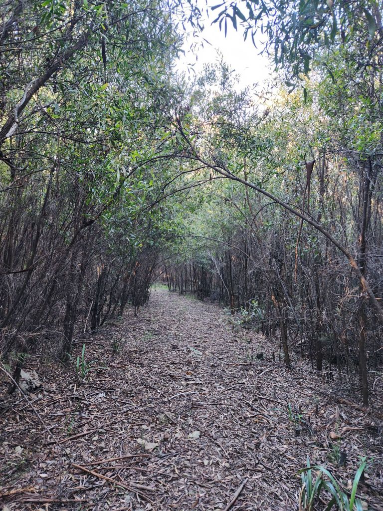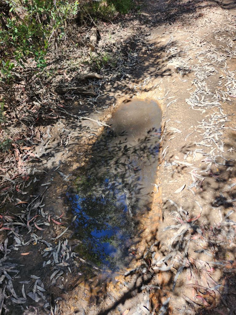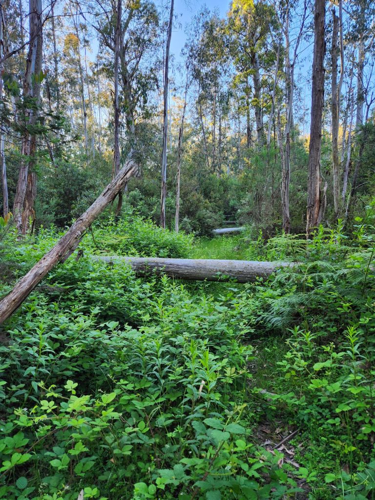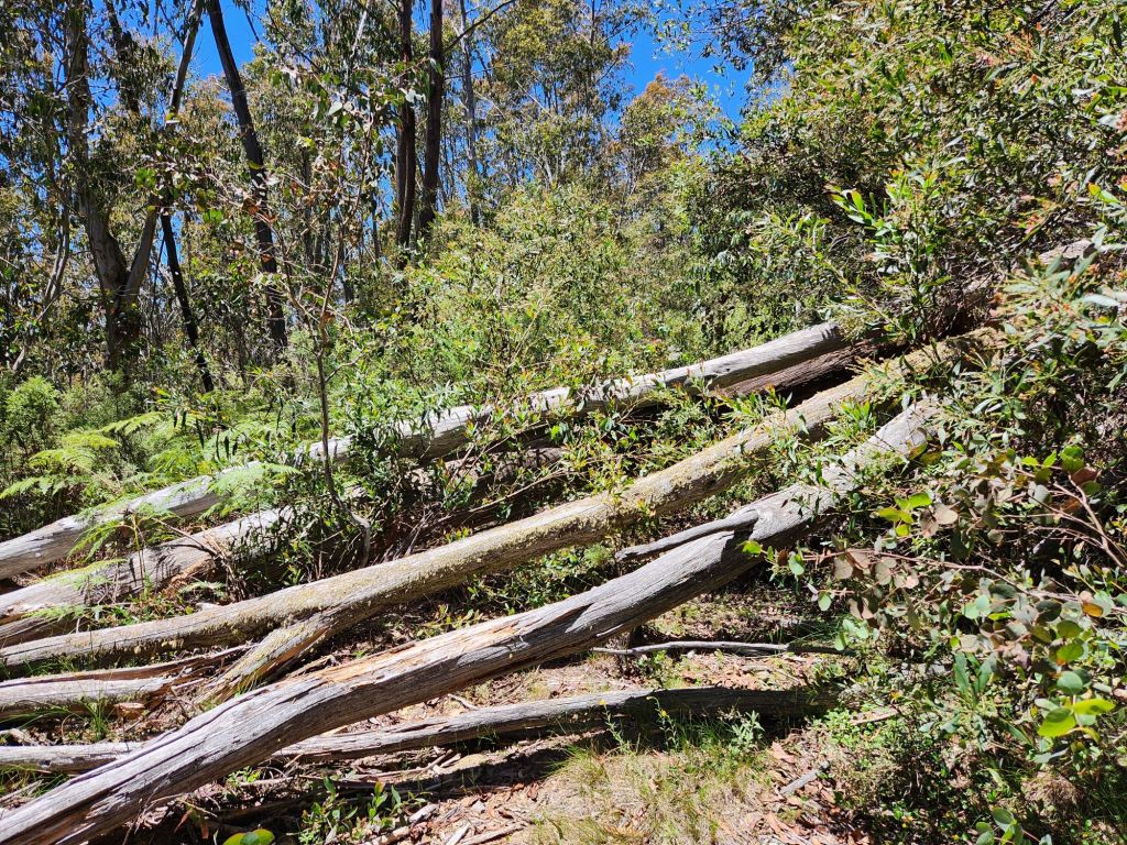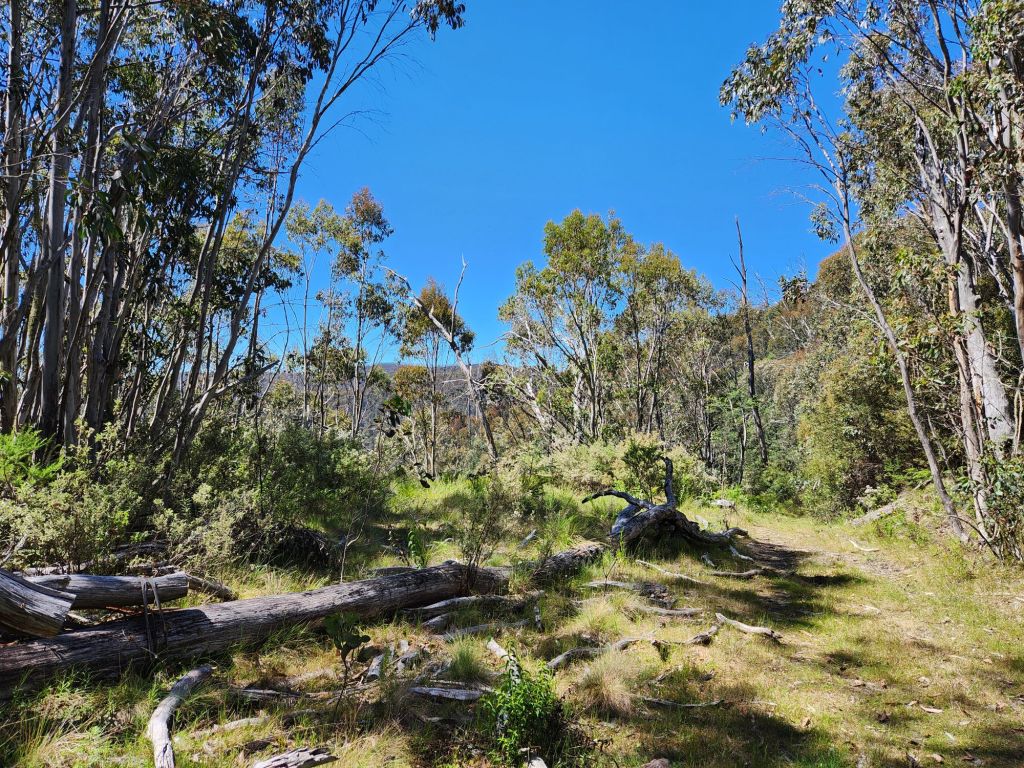 After the down comes the up, and this one was a slog up Champion Spur Track. I think it’s called that because you are a champion if you walk up it! It was about 2.5km of very steep 4WD track and not enjoyable under the sun. My memory from last time was that at the top of the steep section of that track was Mt Selma Road. But in fact, Champion Spur Track goes for a lot longer than that, and it kind of did my head in that it was so different from my memory. I also made a new memory by taking a different track (I think it was Stander Creek Track). I had mistakenly mapped that track instead of mapping to stay on Champion Spur Track, and initially, I thought it was pretty nice. It was an overgrown vehicle track cut into the mountain, winding its way around the terrain. So nice, I decided to eat my peanut butter wrap while walking. As soon as I got it out of my backpack, the trail became massively overgrown, and I had to use both hands to push foliage and blackberry out of my way whilst protecting my wrap! I was about a quarter of the way in and realised this wasn’t the official track, but decided to push on anyway rather than going back. I probably would have been better off going back – this track was a bit longer and definitely bush bashier, but it was fine and eventually it joined back up with Champion Spur Track.