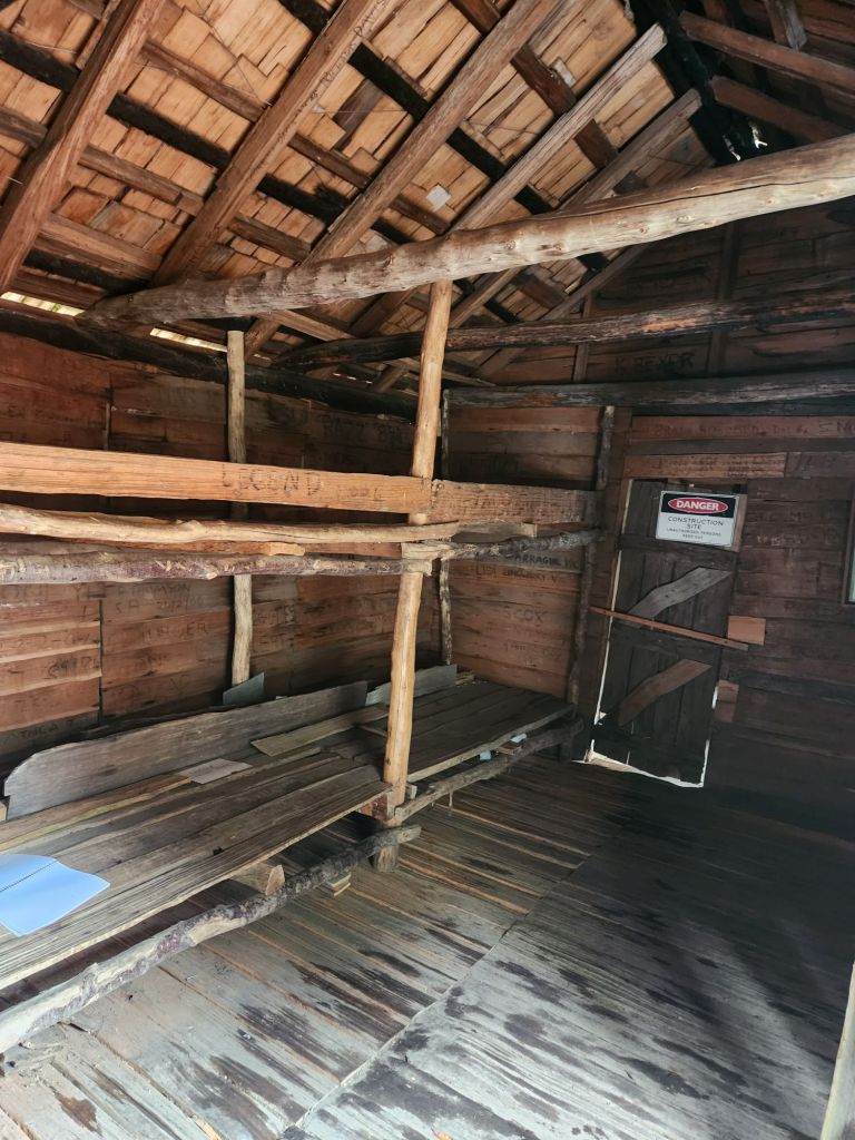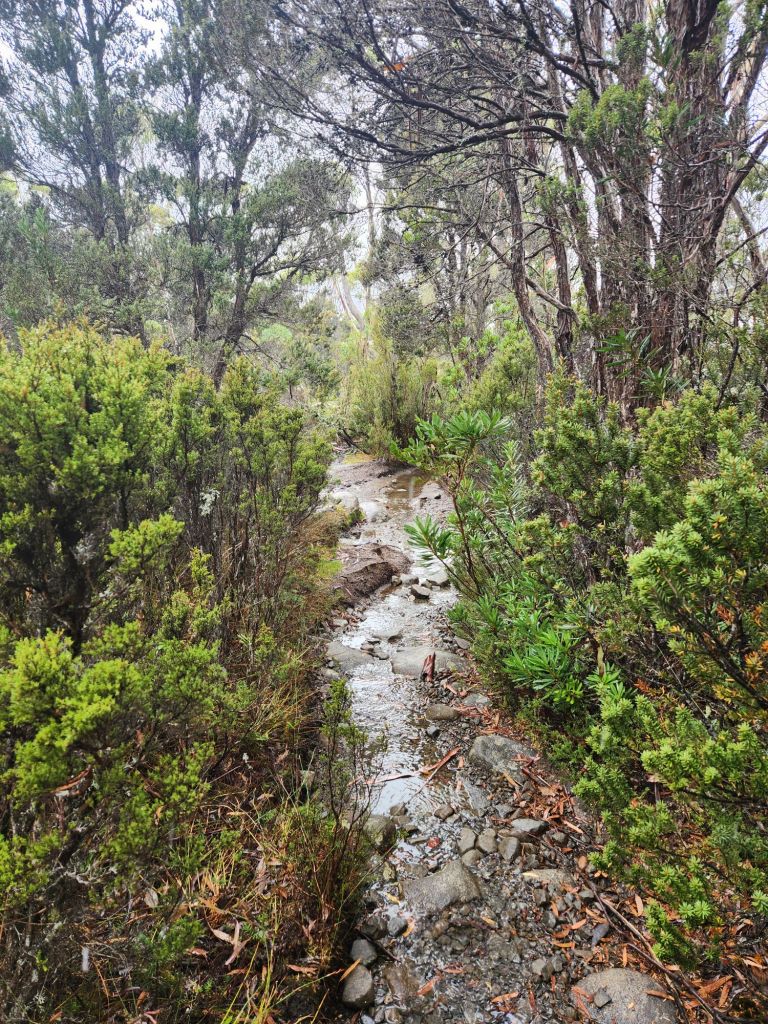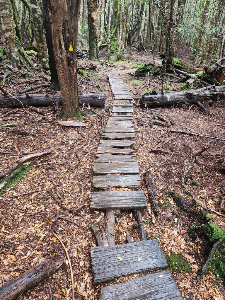 We were cold and hungry when we arrived at Windy Ridge Hut, so ended up having our dinner before 5pm! We shared a table with a mum and son and another couple and spent a lovely evening chatting. This hut was the first to be renovated, and it’s clear they learned lessons from this reno. There are no amazing views, no individual bunks (they are one long bunk that people lie on next to each other like sardines), and the toilet is pretty shabby. The hut only accommodates 24 people, and arriving after all the people who’d stayed at Kia Ora last night meant there were no beds left (not that we wanted to lie on the same bed with randoms anyway). So Kel and I slept in the kitchen next to the heater, and Jubble slept in a covered outside area. He wins the award for tough – there was a roof and walls, but no windproofing, and it was almost freezing.