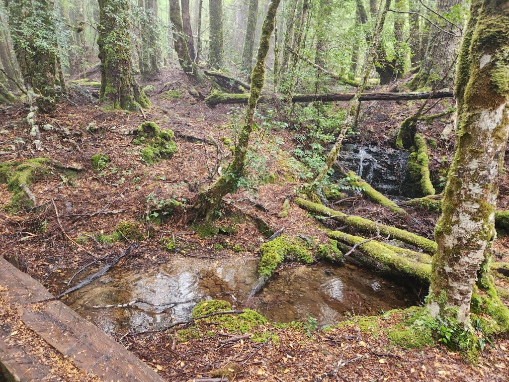 We stopped at Kia Ora Hut for a quick lunch and some emergency foot repairs – one of my little toes is agonisingly sore – then headed off to Windy Ridge Hut. It was cold and raining when we left and we could almost have been tempted to just stay put. But we’re now keen to finish up and not spend days walking in the rain, so we pushed on. We spent the afternoon walking through a beautiful forest. But at some point, we just got over walking on f#$!ing tree roots. It was very hard work and not enjoyable walking. We all kept imagining the torture for poor old Rich trying to run over that. The great thing was that it didn’t really rain too much on us, so we felt pretty lucky.
